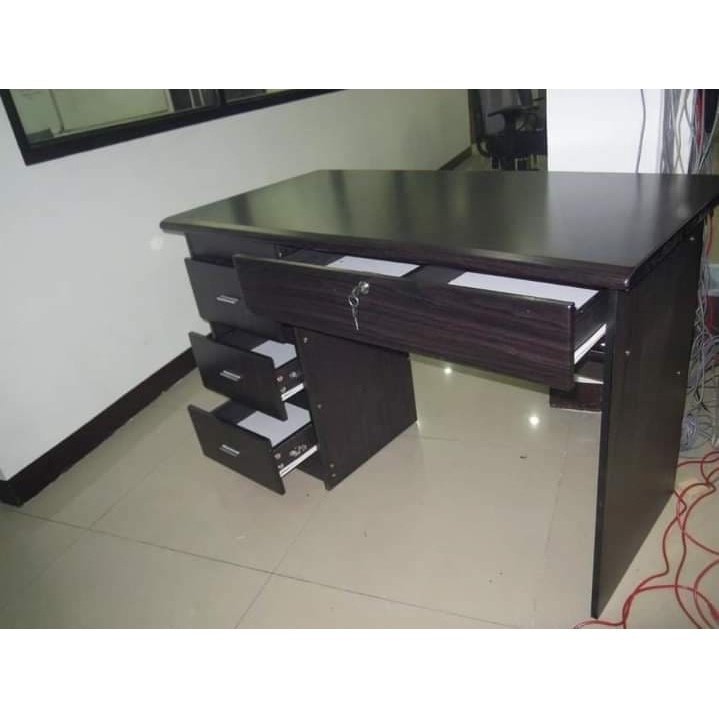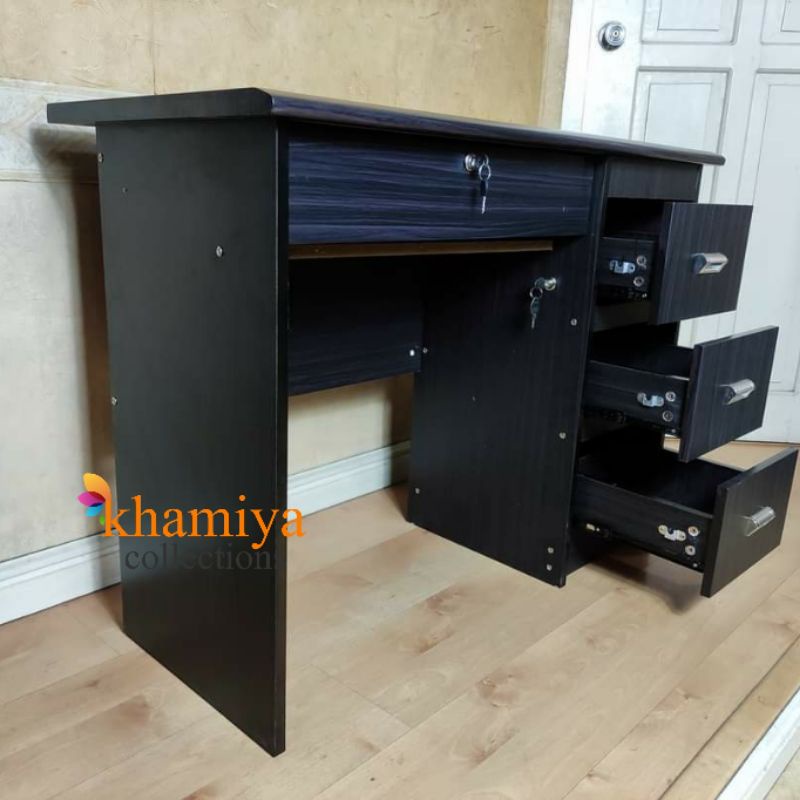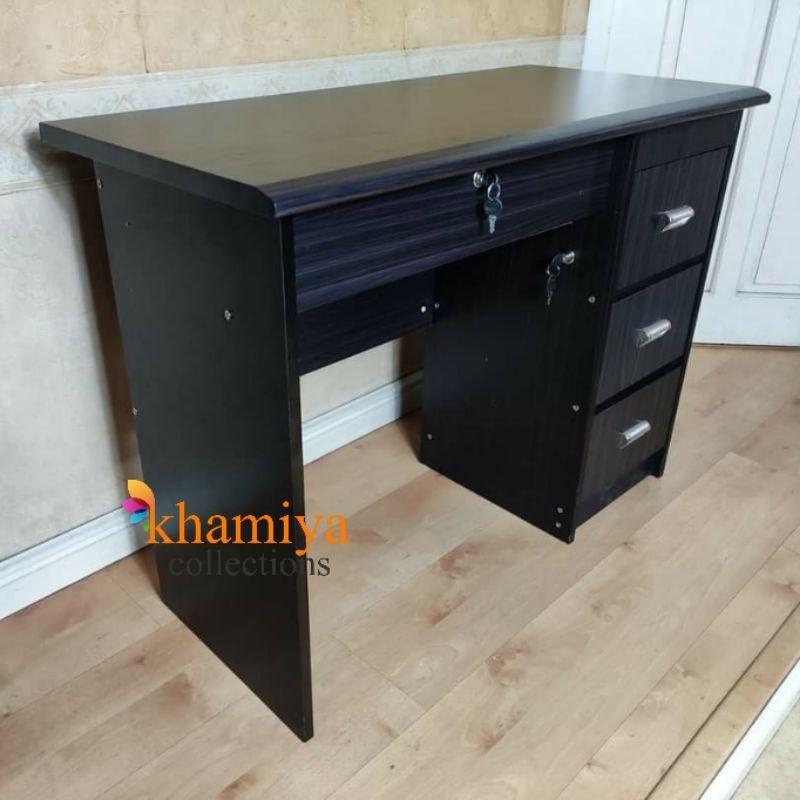 Modern Office Table with Center Drawer, Pedestal Drawers and Cabinet in Wenge, Computer Workstation