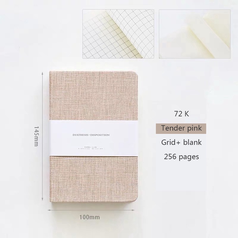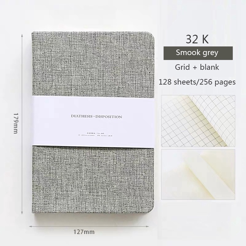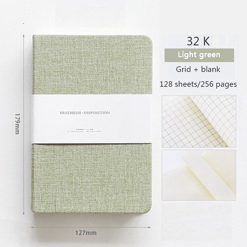 Modern Style Diary Linen hard cover half Blank and half grid page 256 pages, Bullet journal, Handmade planner, sketchbook Stationery School&office suppli