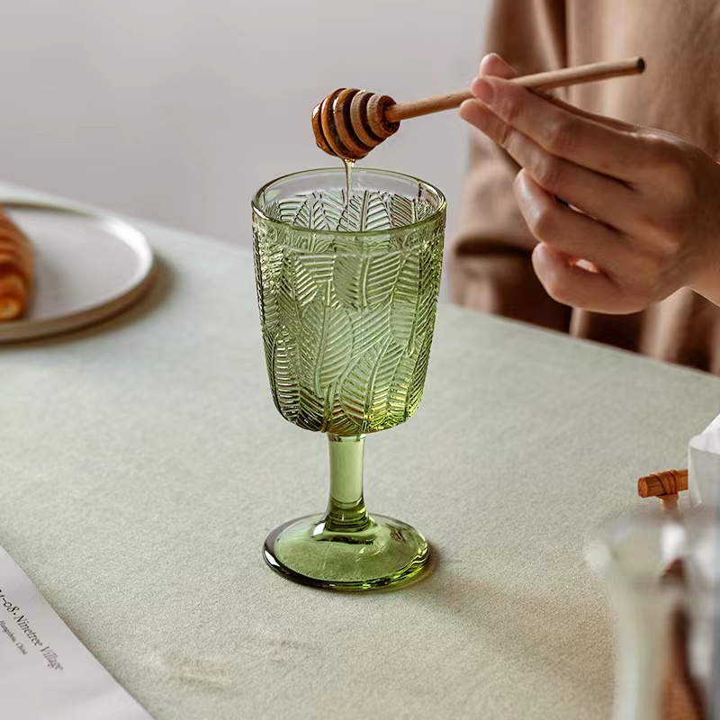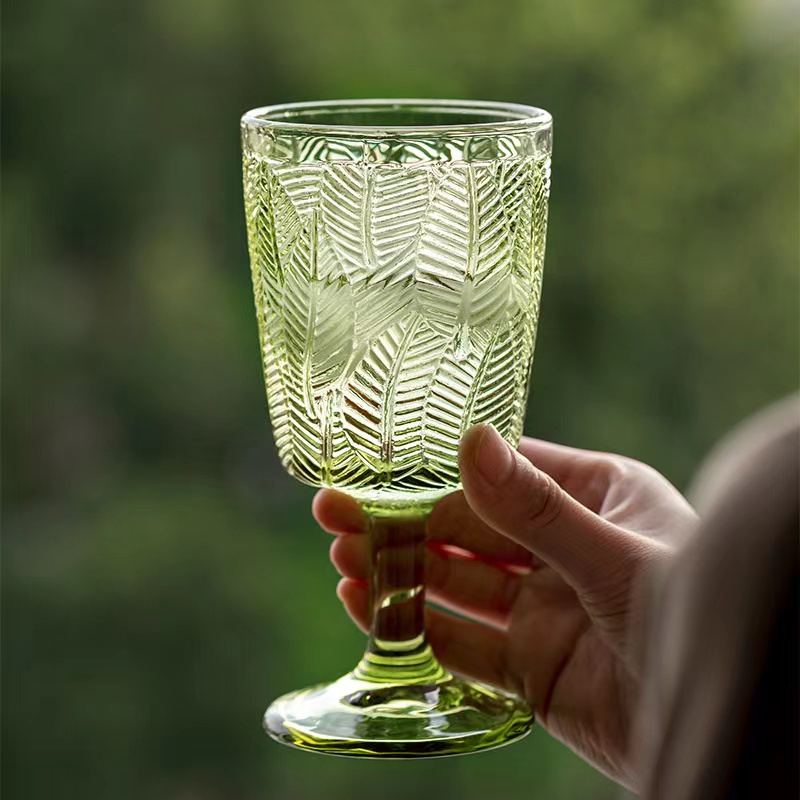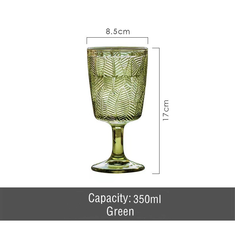 Modern Vintage Embossed Leaves Pattern Goblet Glassware Water Goblet Crystal Wine Glassware 350ml