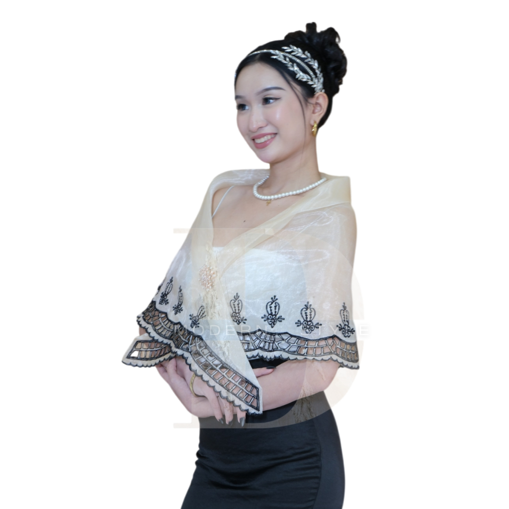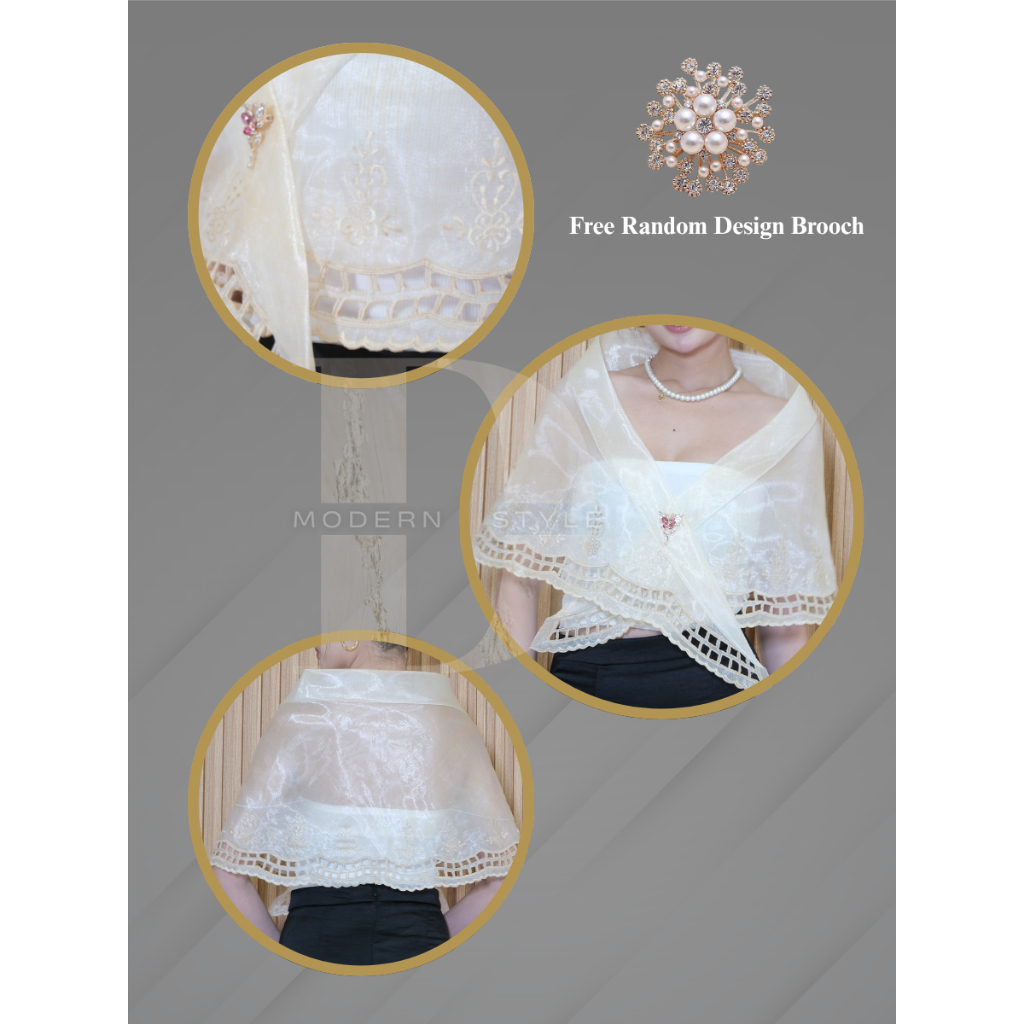 Modern Filipiniana Alampay Shawl With Free Brooch