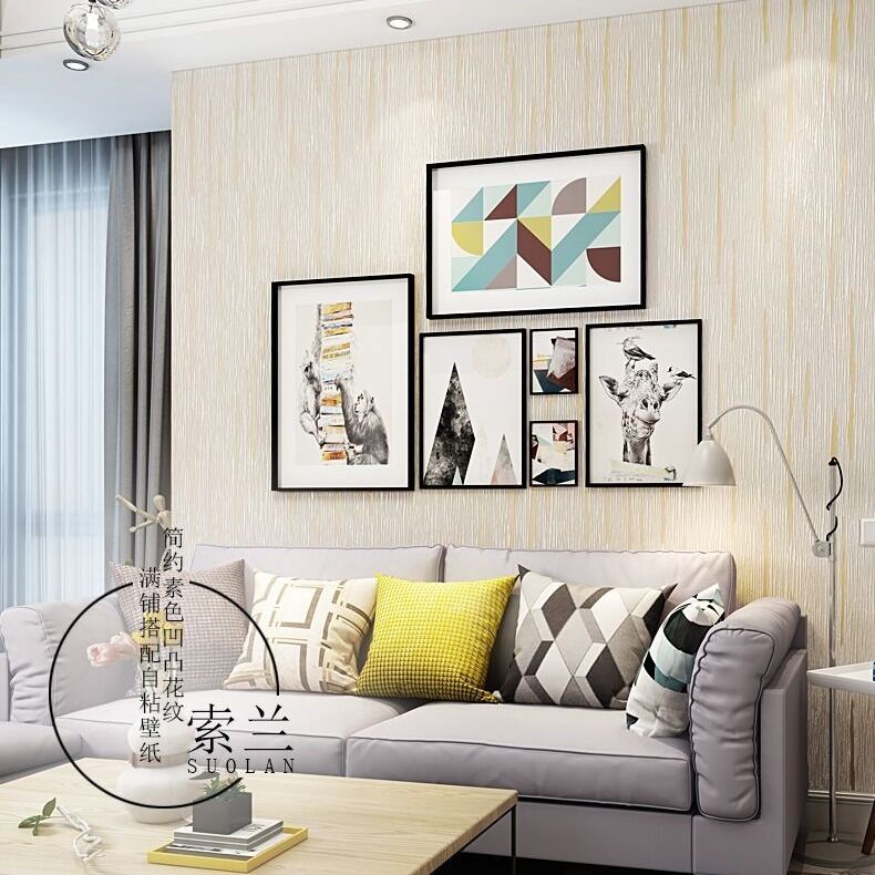 Modern minimalist dormitory non-woven wallpaper self-adhesive bedroom warm living room self-stickers wallpaper 3D stereo background wall stickers
