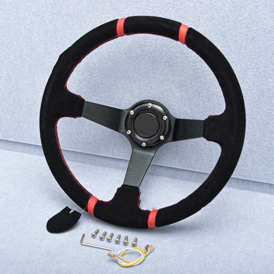 Modified Plush Suede Universal Competitive Steering Wheel With Infinite Concave Four Ring Frosted Leather Steering Wheel
