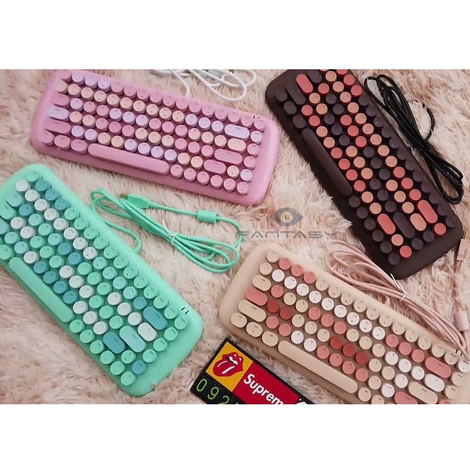 Mofii Candy M Wired Backlit Mechanical Gaming Keyboard Punk Keyboard with Cute Retro Round Keycaps