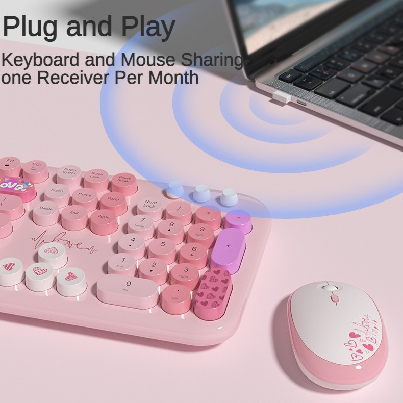 Mofii LOVELY Wireless 2.4g Keyboard and Mouse Set High Beauty Desktop Laptop Female Office Pink