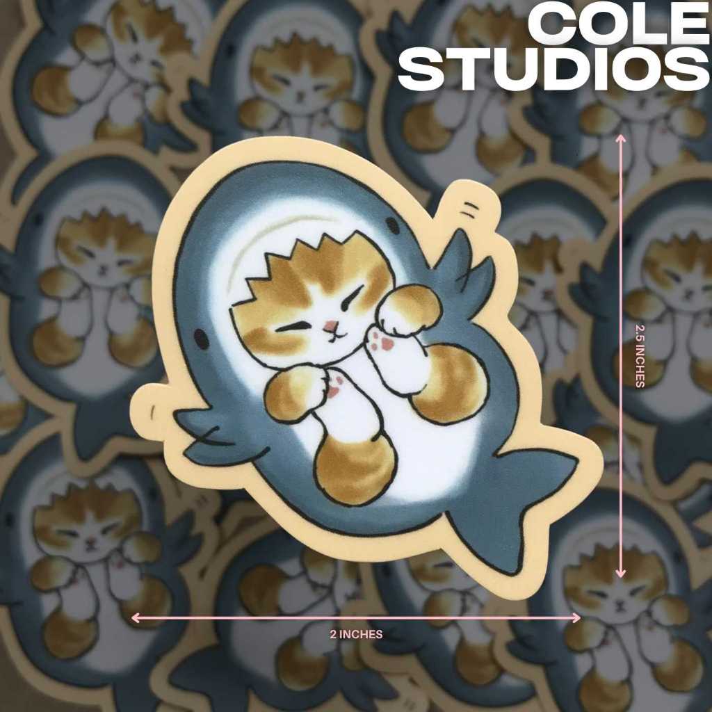 Mofusand Shark Cat >^•-•^< | Laptop and Tumbler Matte Waterproof Sticker