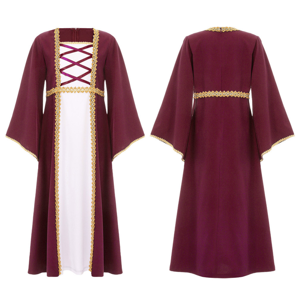 Moily Kids Girls Medieval Renaissance Royalty Princess Dress Costume Dress Up Fancy Costume Gown for Halloween Party Stage Performance