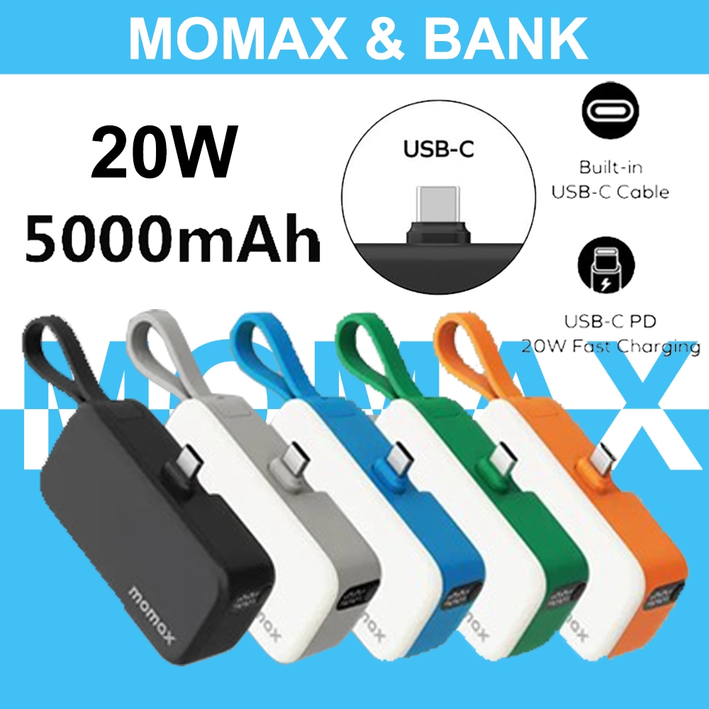 Momax PD 20W 5000mAh Power Bank 1 power Mini 3-in-1 Built-in USB-C Power Pack Cable