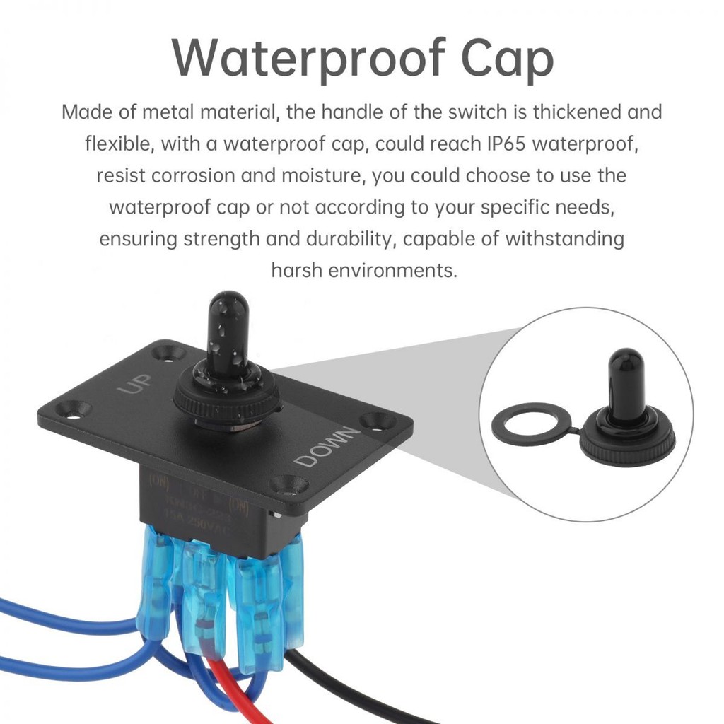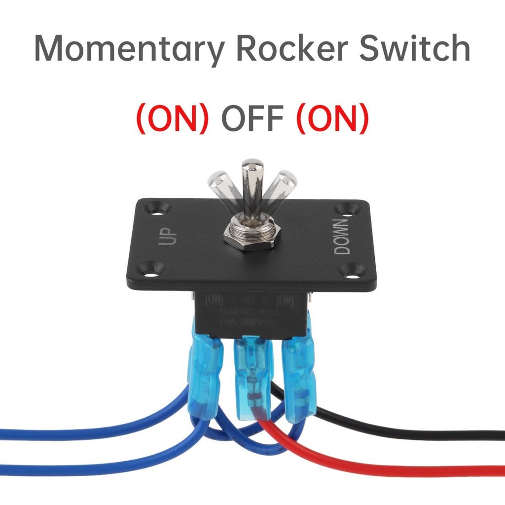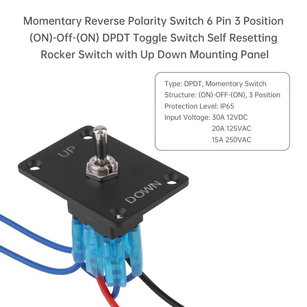 Momentary Reverse Polarity Switch 6 Pin 3 Position (ON)-Off-(ON) DPDT Toggle Switch Self Resetting Rocker Switch with Up Down Mounting Panel, Waterproof Cap, Pre-Wired Cables