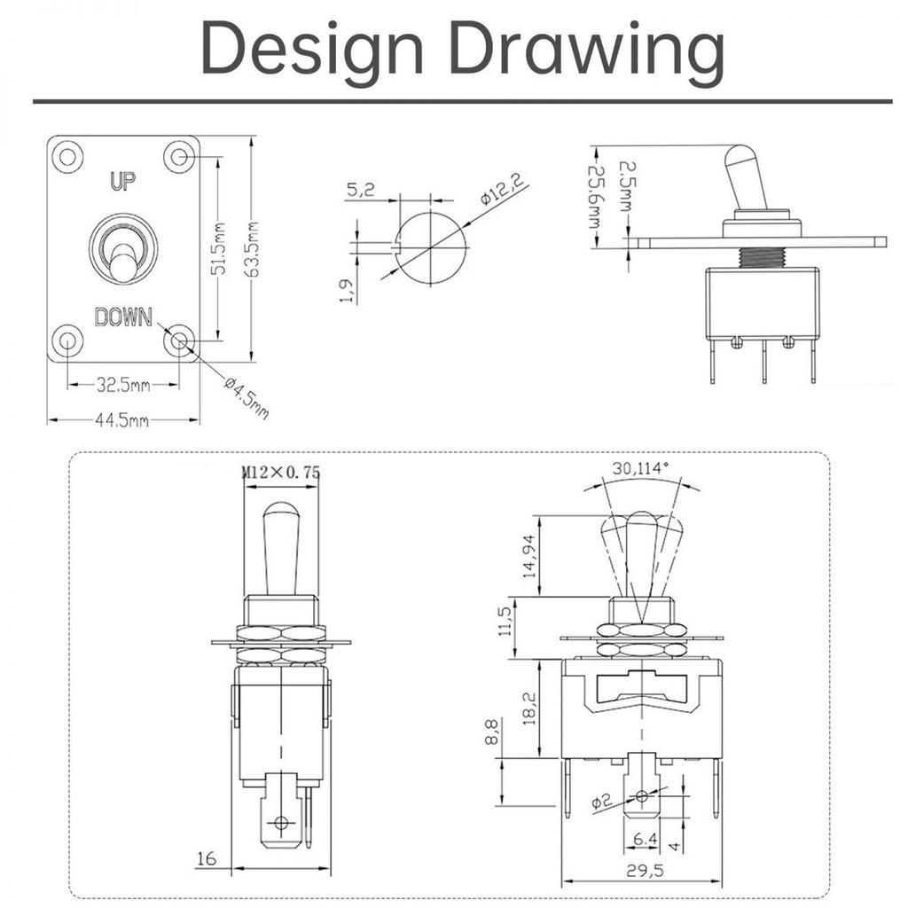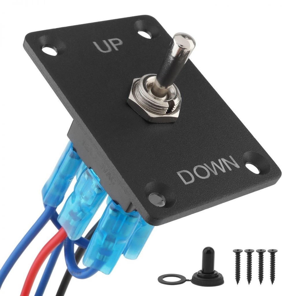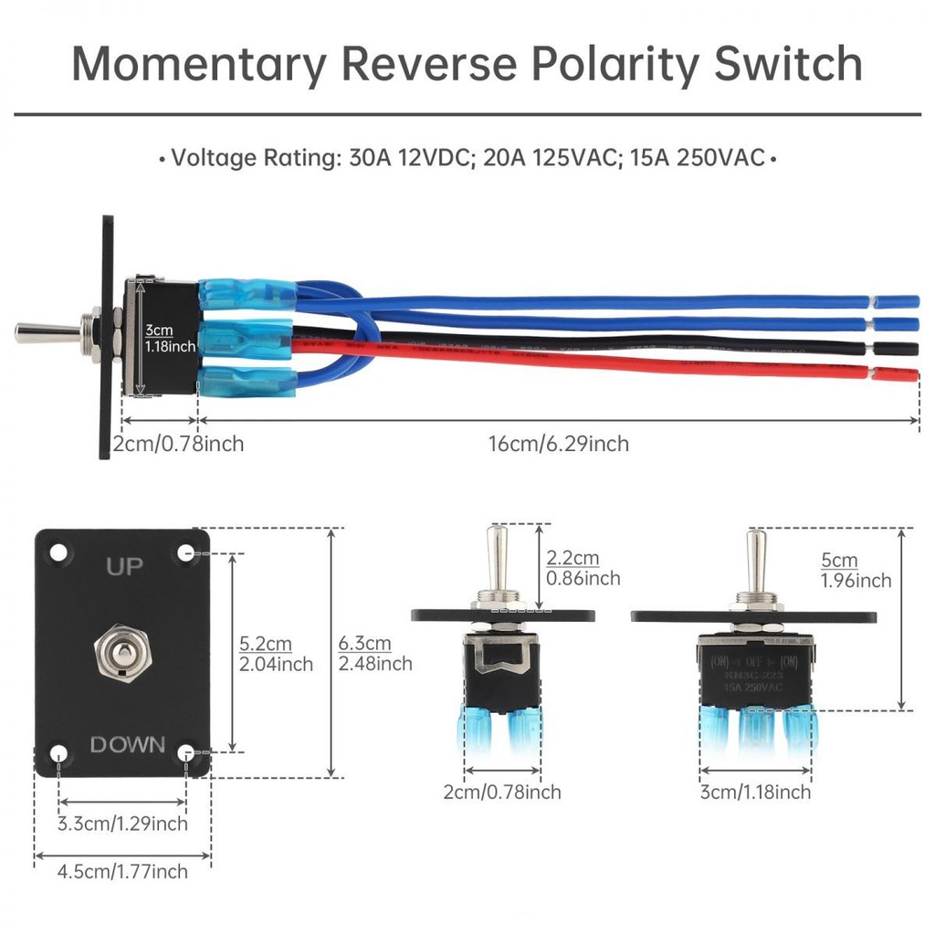 Momentary Reverse Polarity Switch 6 Pin 3 Position (ON)-Off-(ON) DPDT Toggle Switch Self Resetting Rocker Switch with Up Down Mounting Panel, Waterproof Cap, Pre-Wired Cables