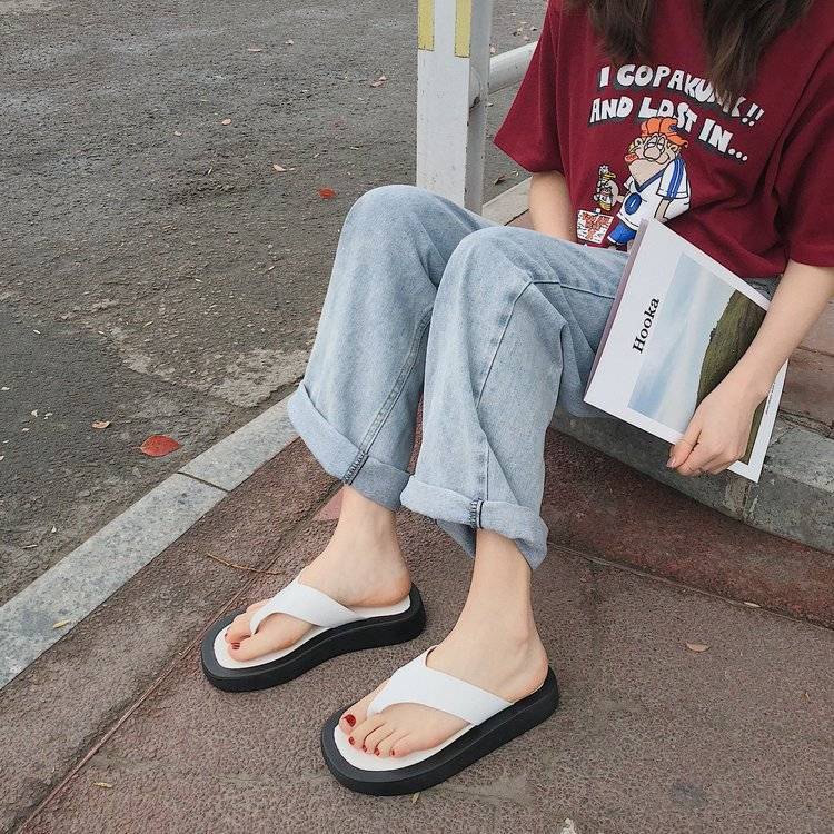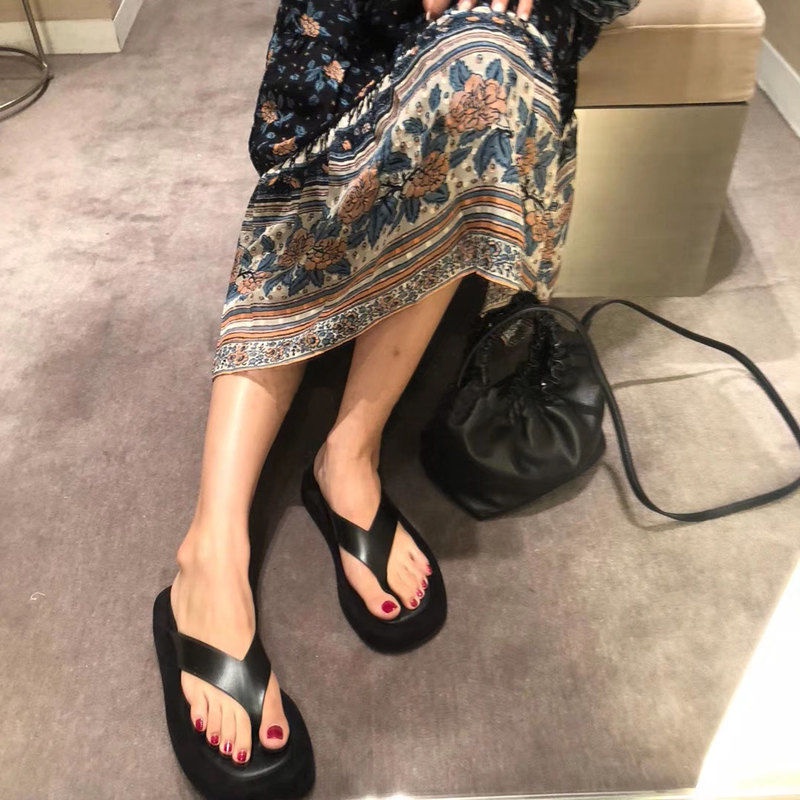 MonaNet Red Celebrity Inspired Platform Color Matching Split Toe Flip-flops2022Women's Summer New Al