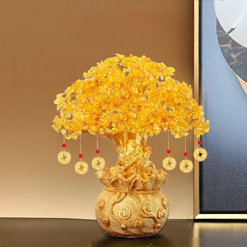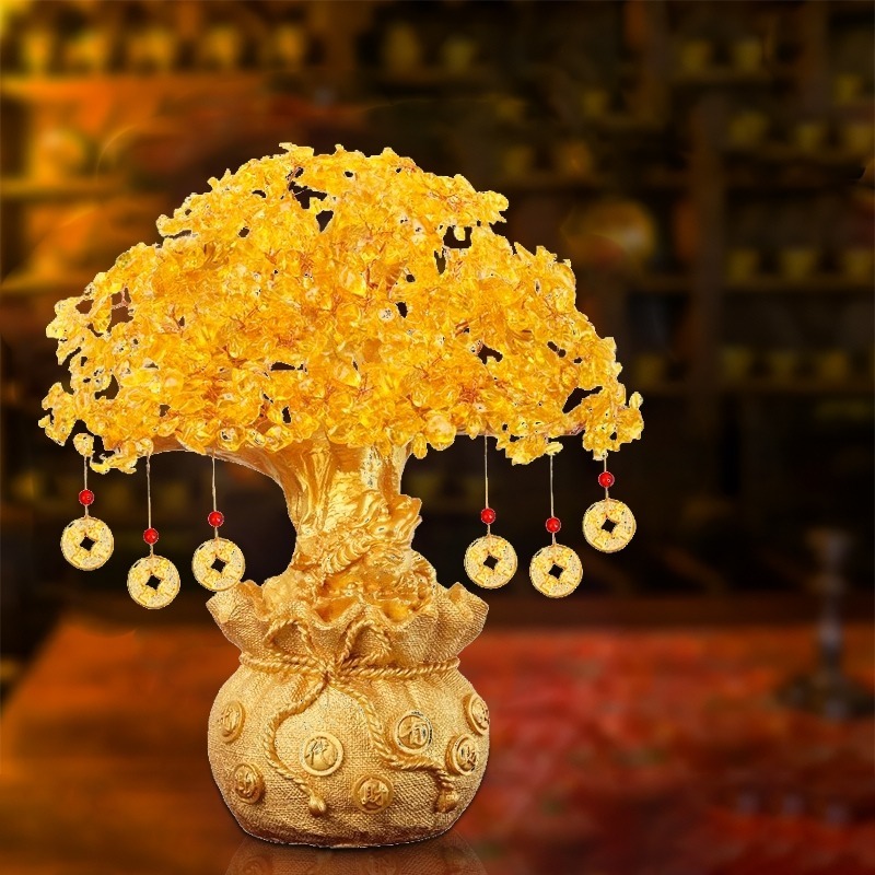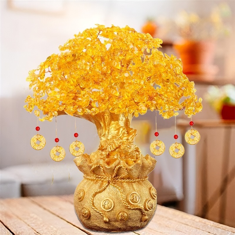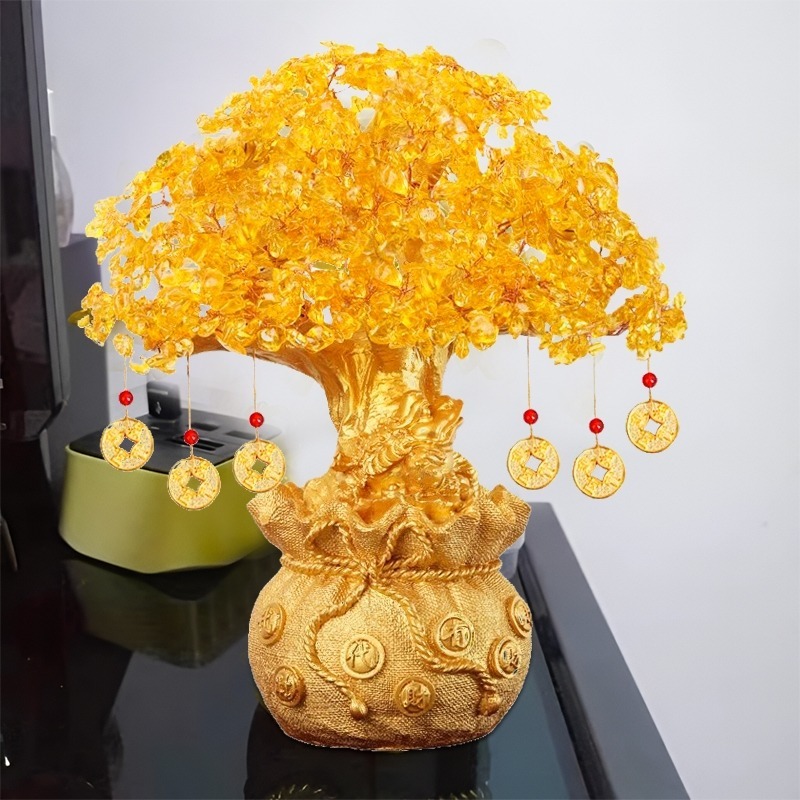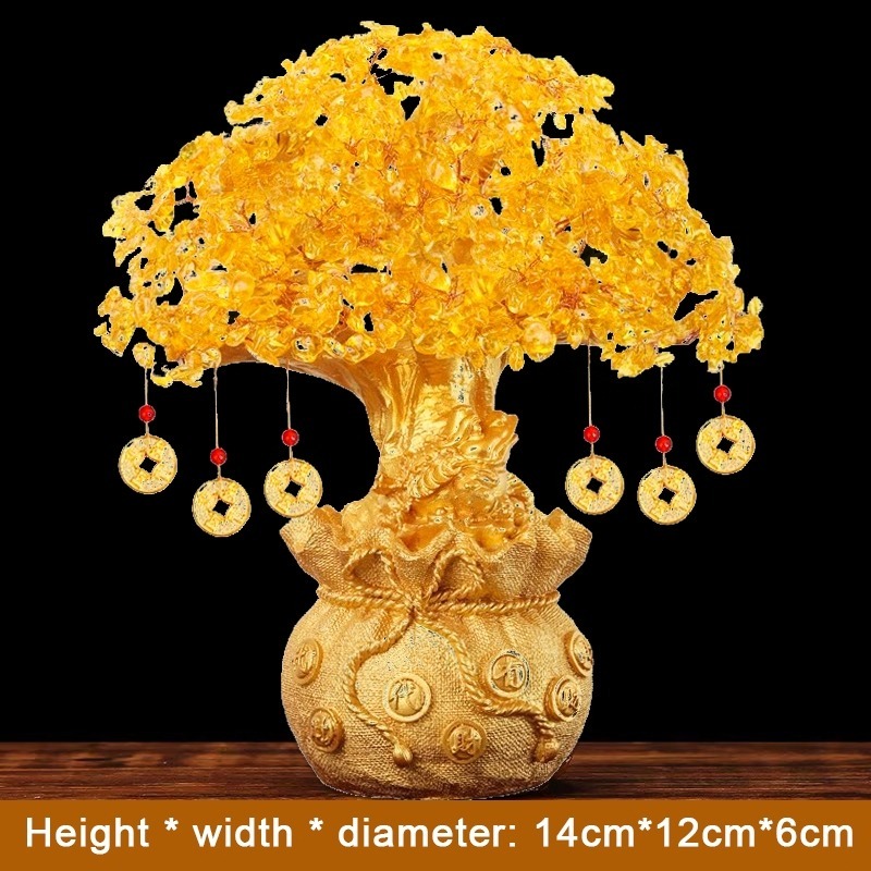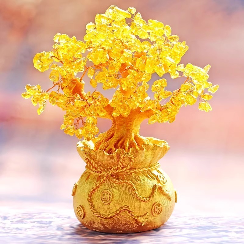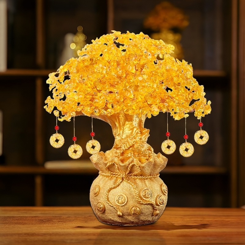 【high-end】Money Tree Crystal Lucky Tree Money Bag Tree Bonsai Wealth Home Decoration Business Craft