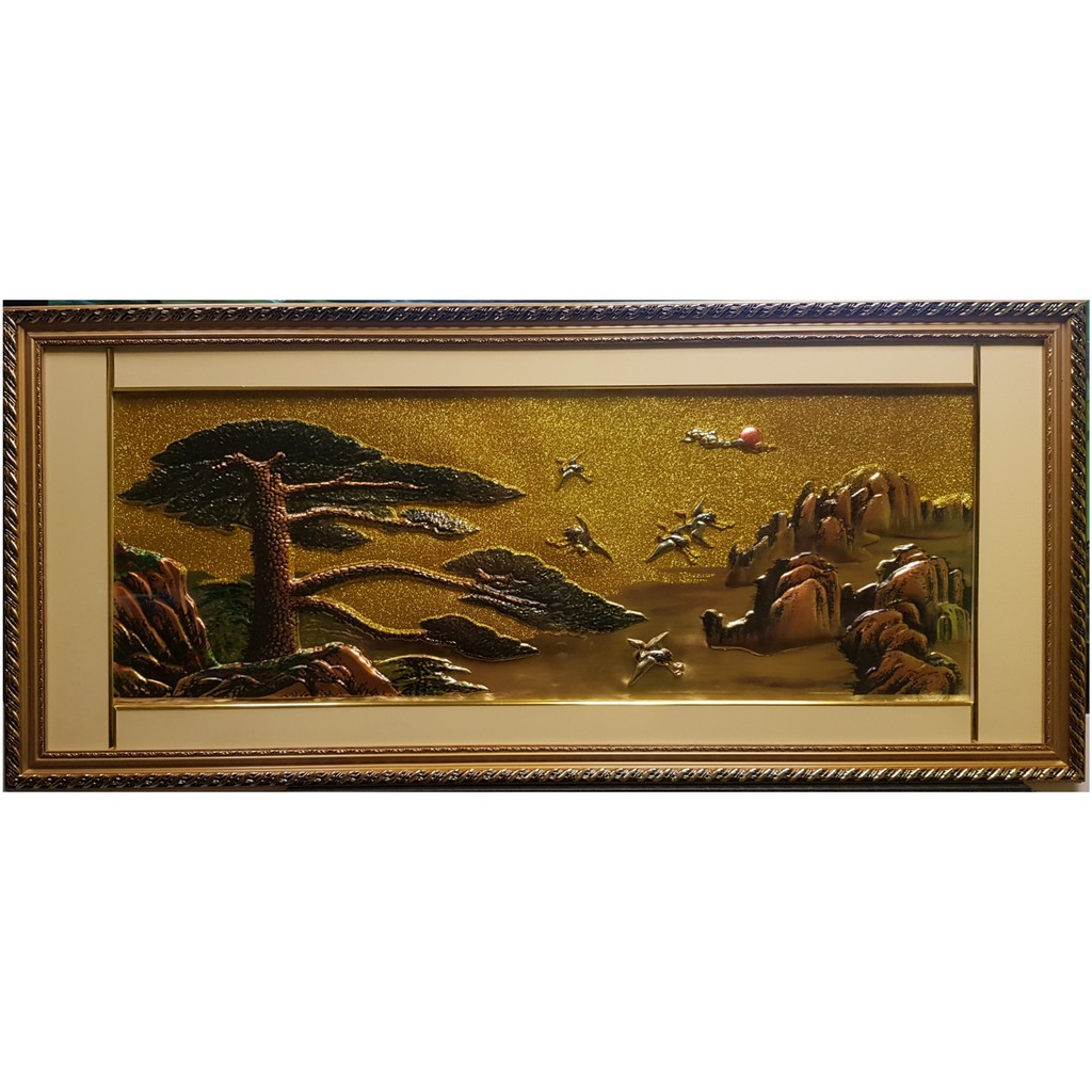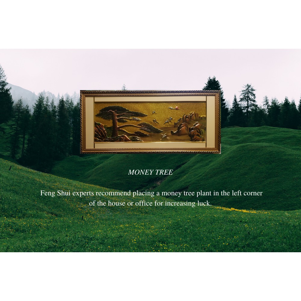 Money Tree Wall Decor with Frame 53cm x 118cm Embossed Image