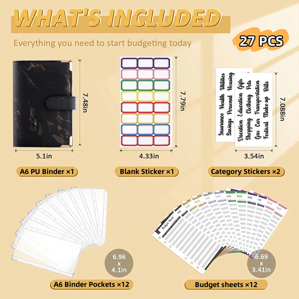 Money organizer wallet with label A6 Budget wallet organizer 27pcs Budget organizer Ipon challenge booklet