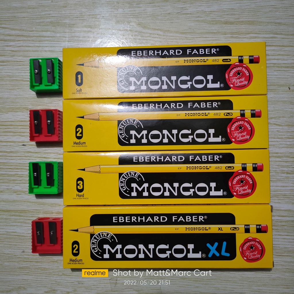 Mongol Pencils #1, #2, #3, XL Eberhard Faber (EF) GENUINE box of 12 pcs FREE SHARPENER