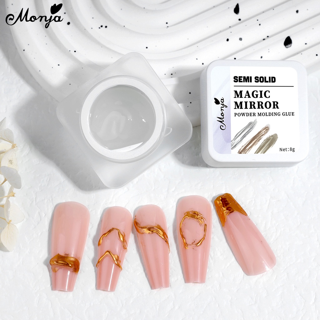Monja 8g/18g Clear Semi Solid Nail Magic Mirror powder Molding Glue Can Be Used with Mirror Powder Soak Off UV LED DIY Manicure Tool