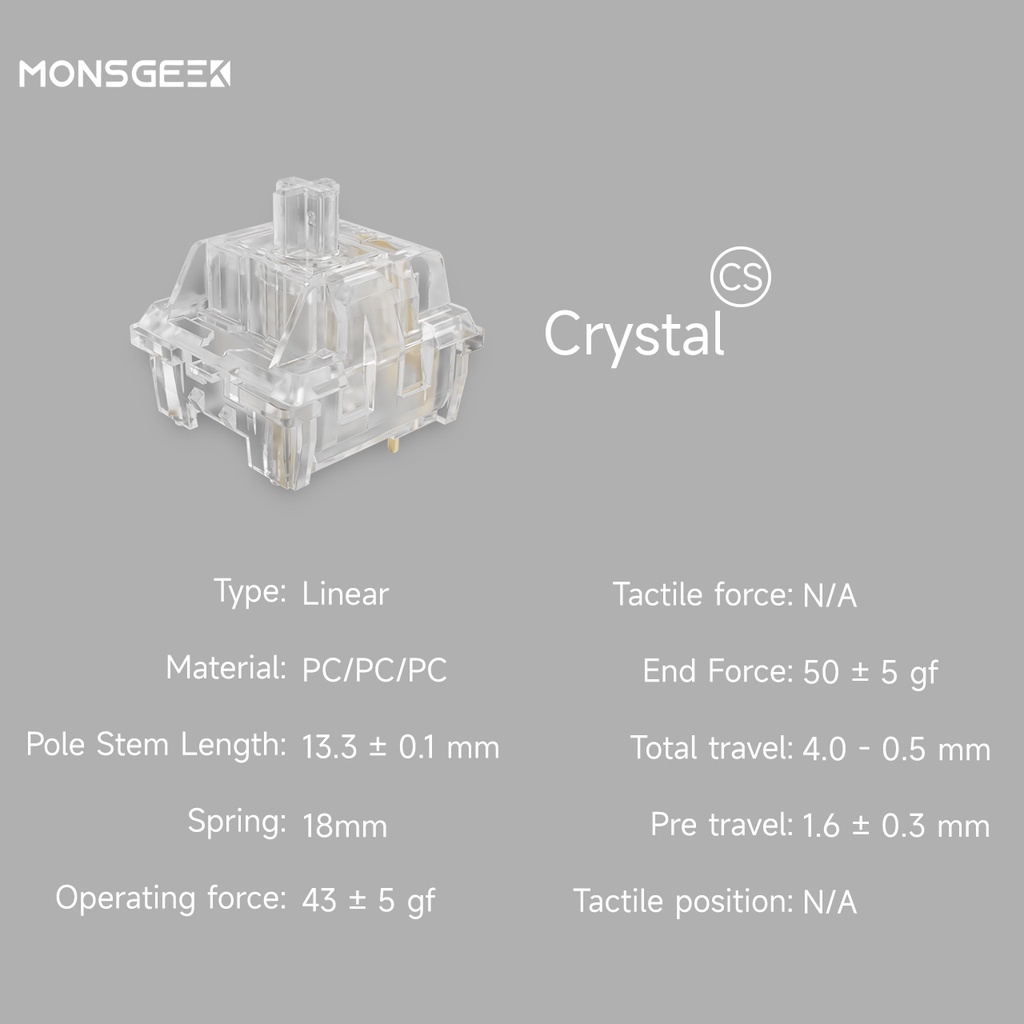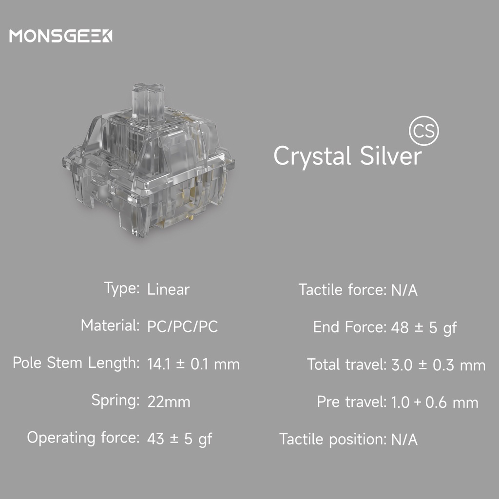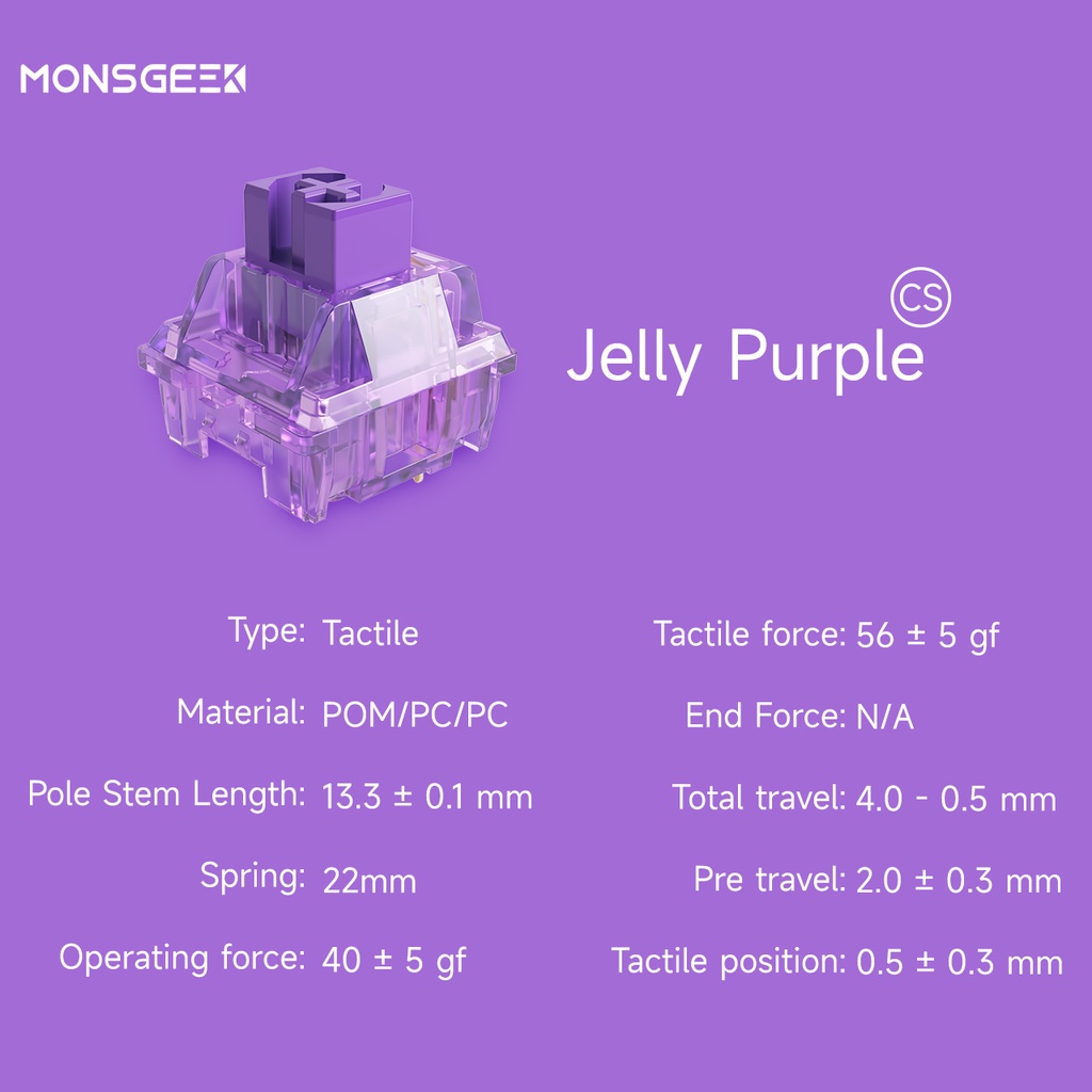 MonsGeek CS Switches with Stable Dustproof Stem for MX Mechanical Keyboard (110 pcs, Crystal/Jelly Purple/ Sliver)