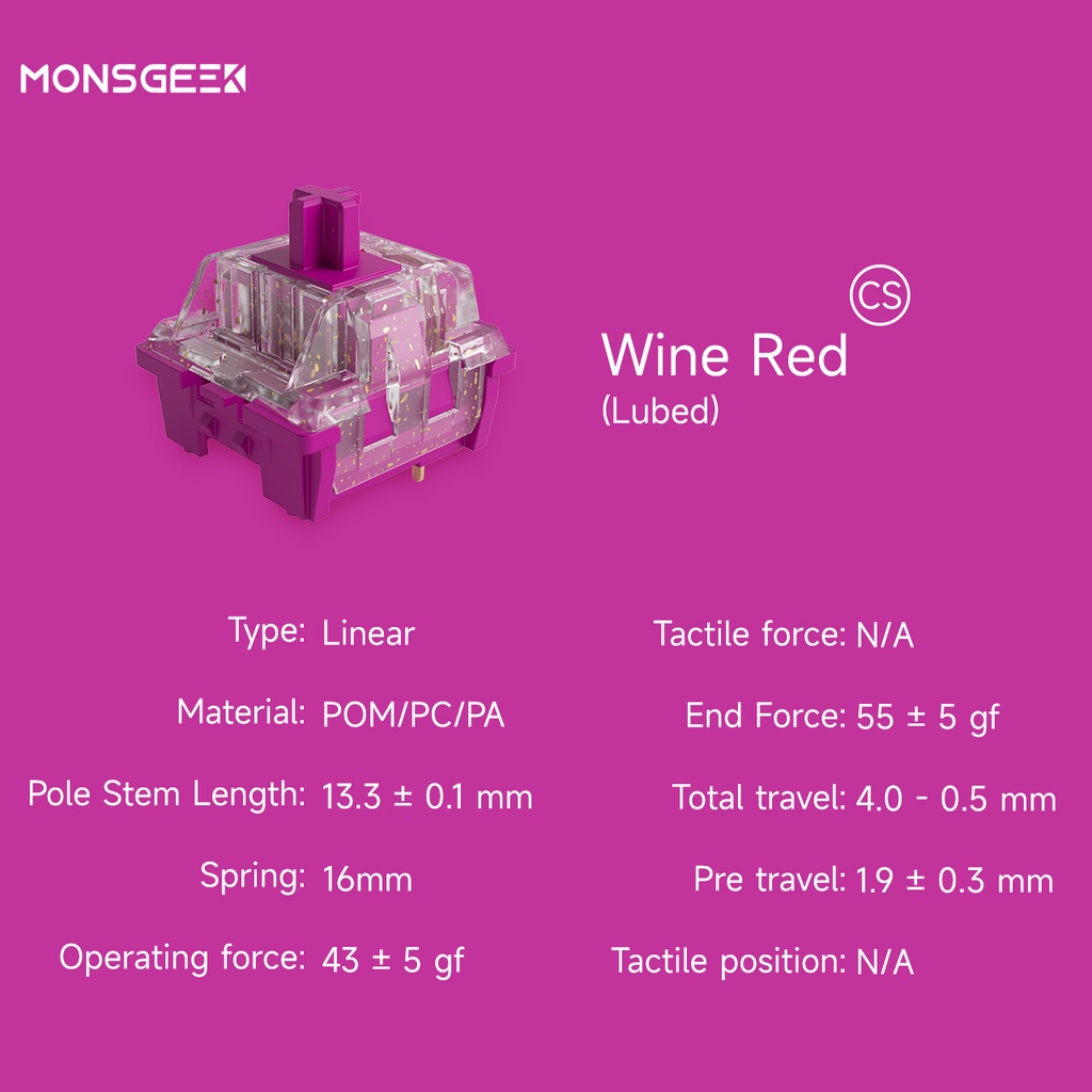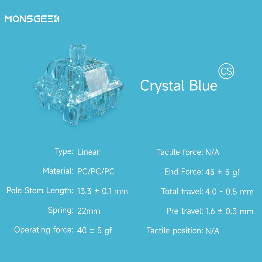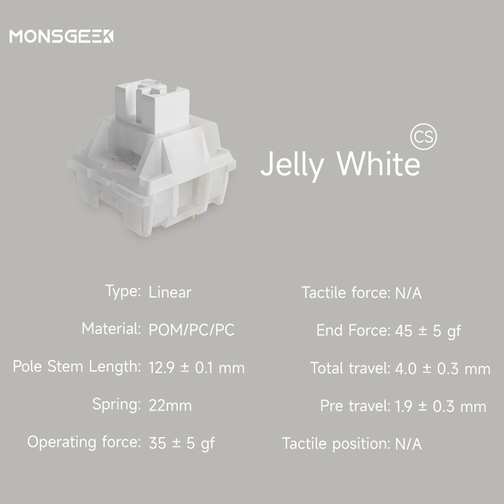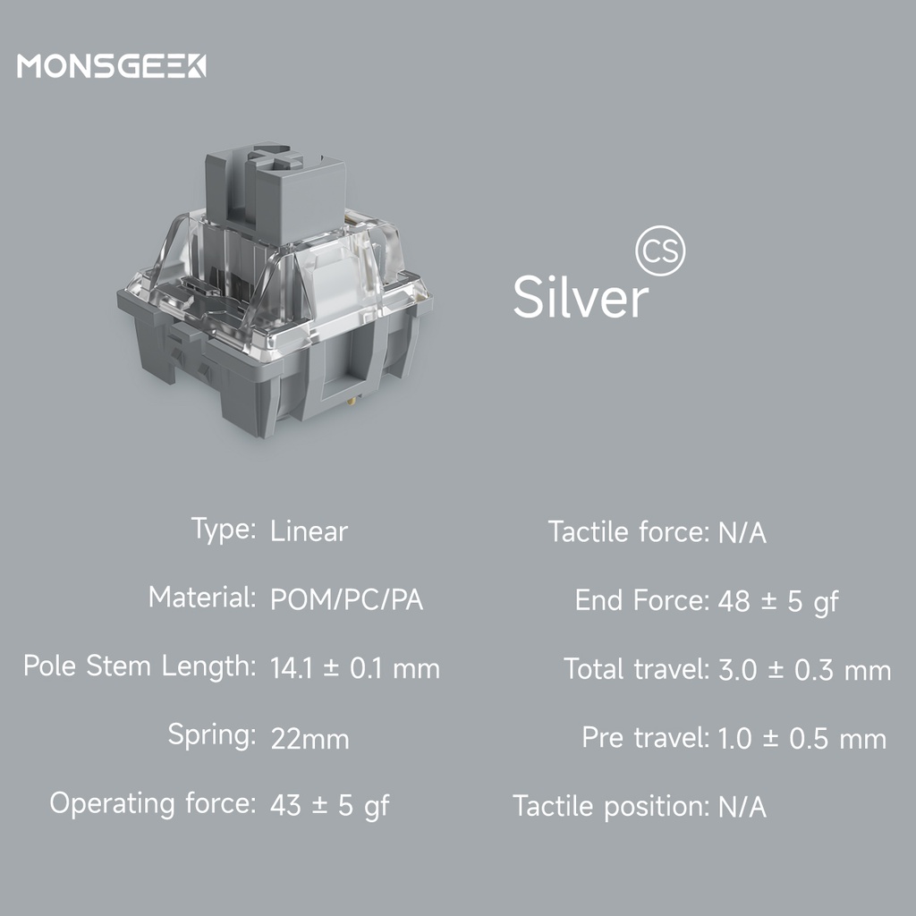 MonsGeek CS Switches with Stable Dustproof Stem for MX Mechanical Keyboard (110 pcs, Crystal/Jelly Purple/ Sliver)