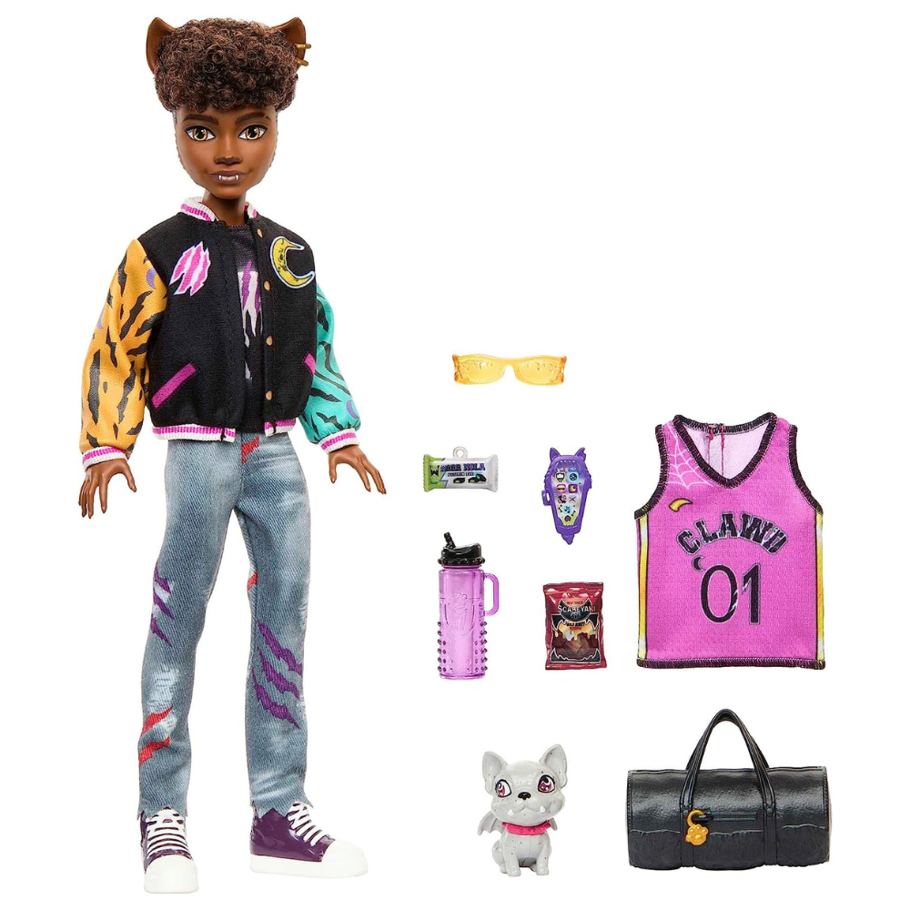 Monster High Fashion Doll Clawd Wolf Werewolf Signature Look in Varsity Jacket with Pet Gargoyle Toy