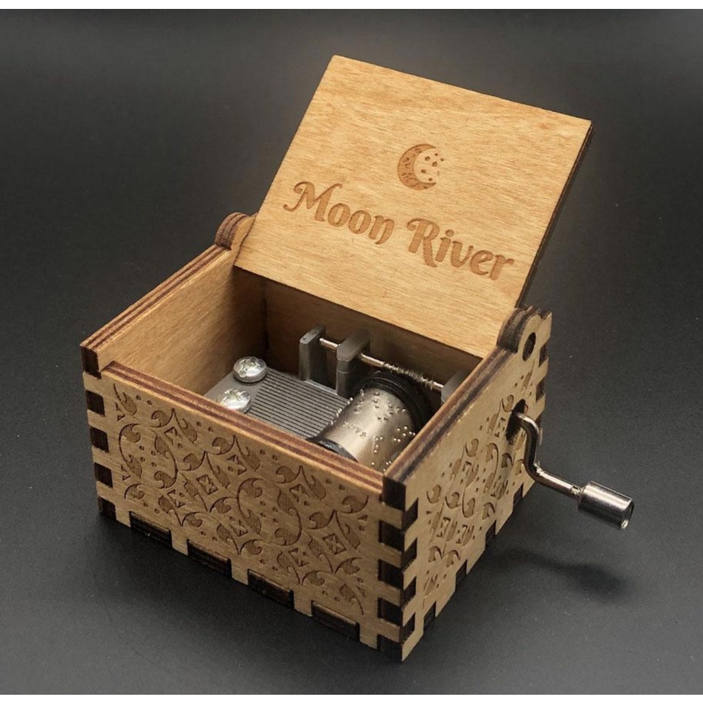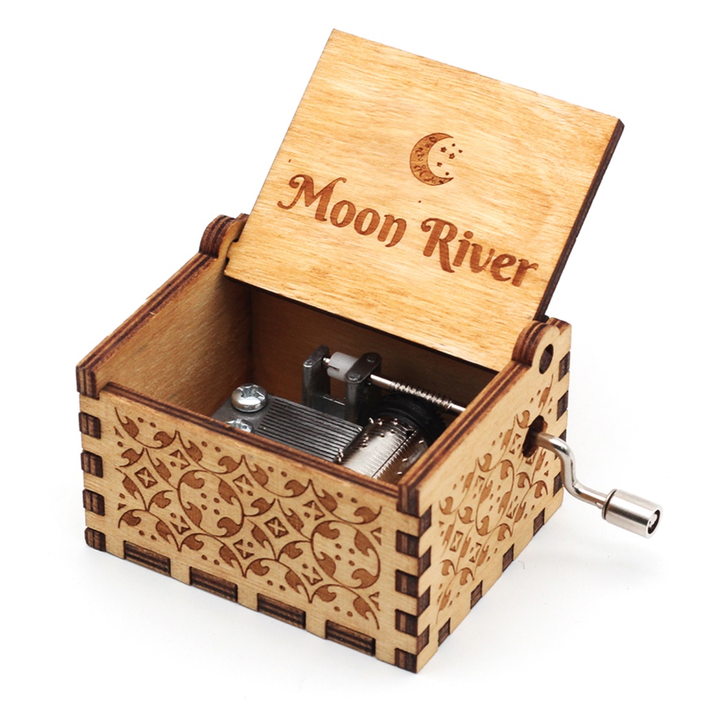 Monstermarketing Wooden Music Box- Moon River Engraved Musical Case Toys For Kids