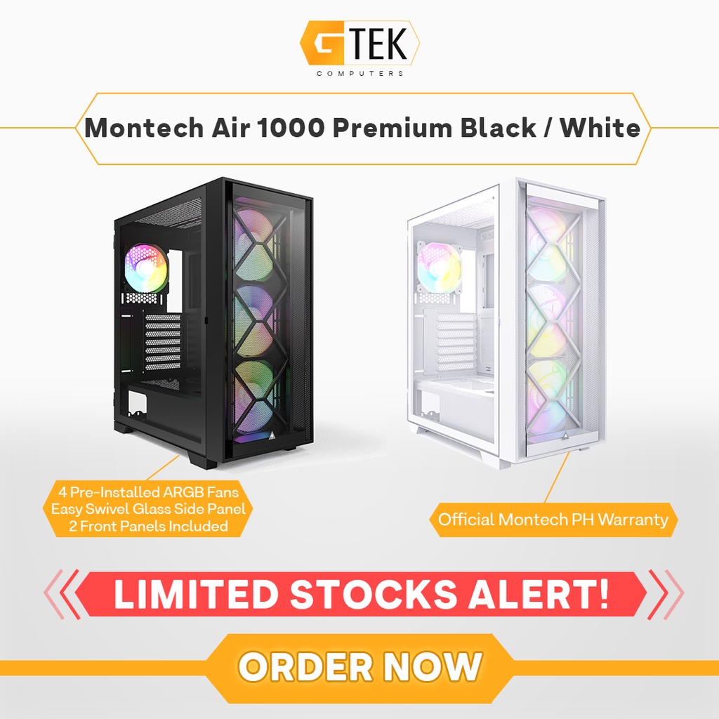 Montech Air 1000 Premium Black / White w/ 4 ARGB Fans ATX PC Case