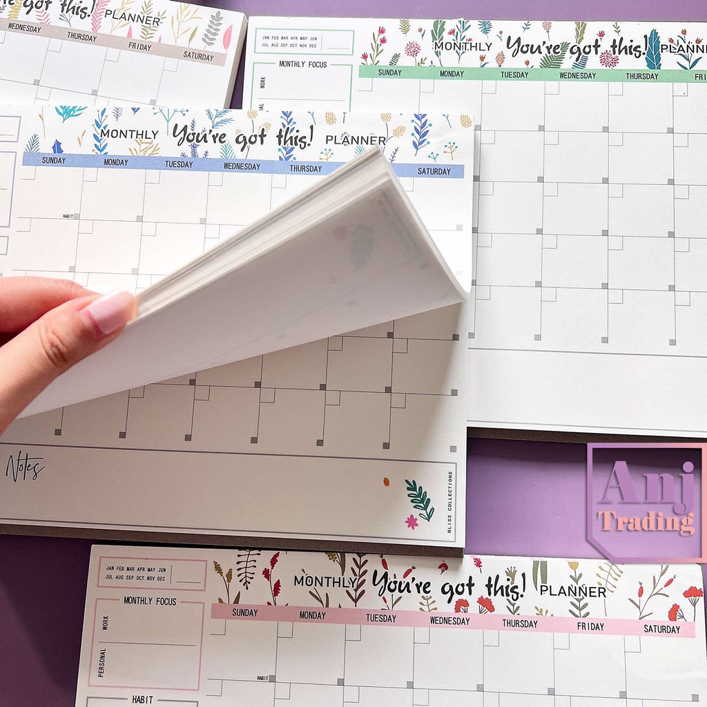 Monthly/Weekly Planner on Desk Tear Off Pad 60 Undated Sheets A4 Size Desk Notepad Calendar Tracker