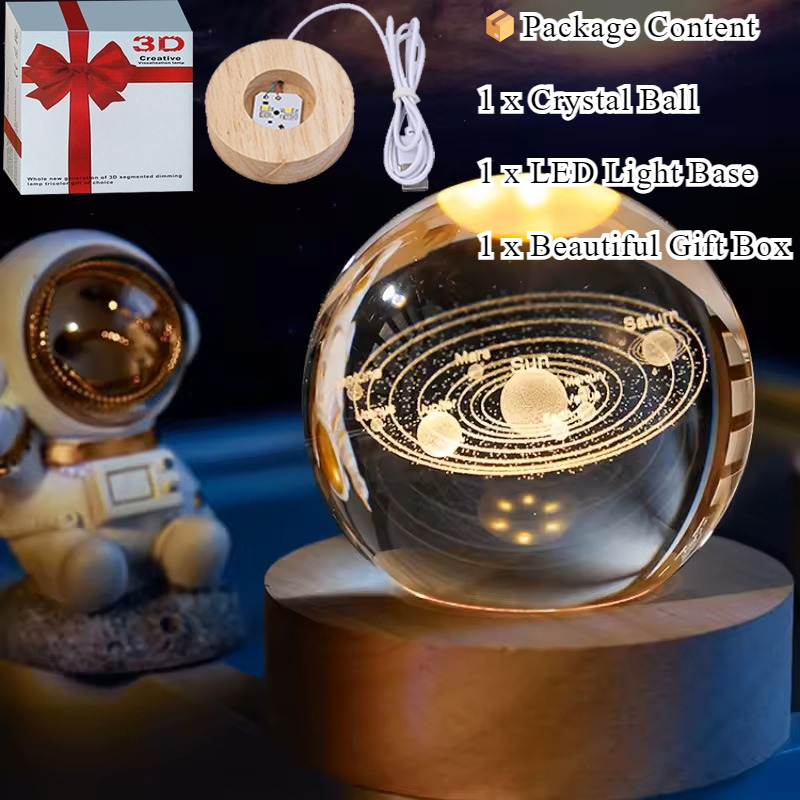 Moon 3D Crystal Ball Night Lamp USB table Crystal Light Wooden LED Base Valentine gift lovely decor