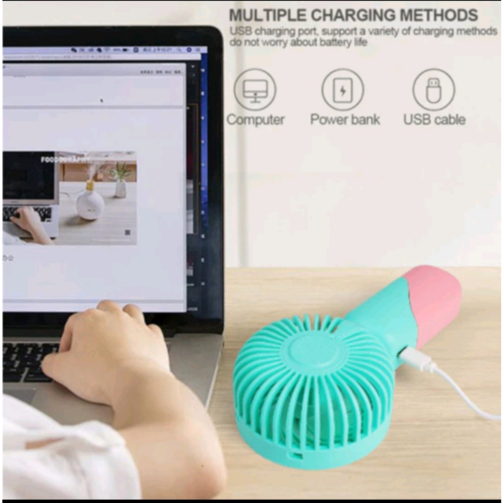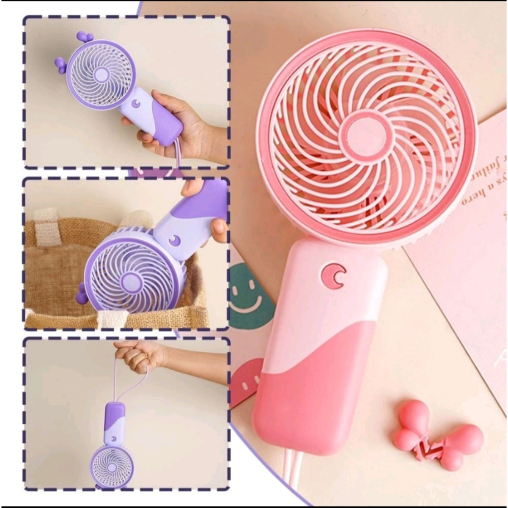 Moon-shaped button Hand fan New Rechargeable Handheld fan w/ hanging rope summer cute mini handfans