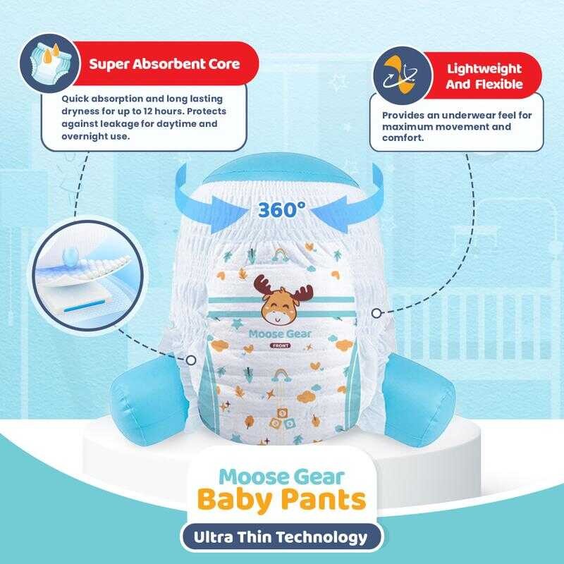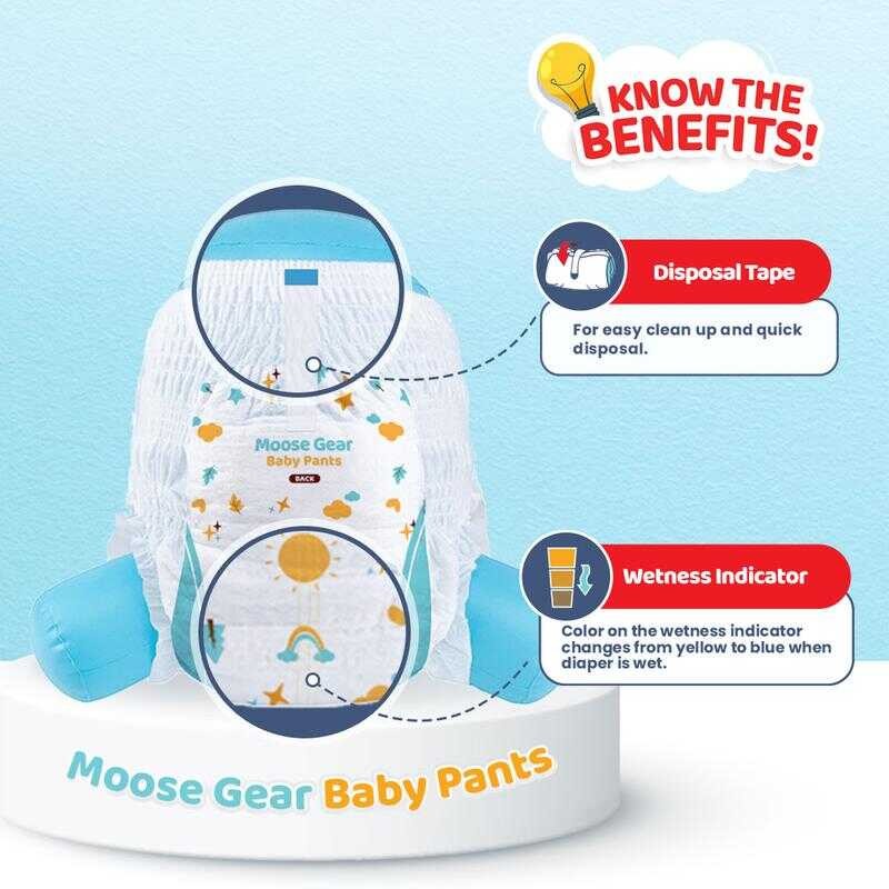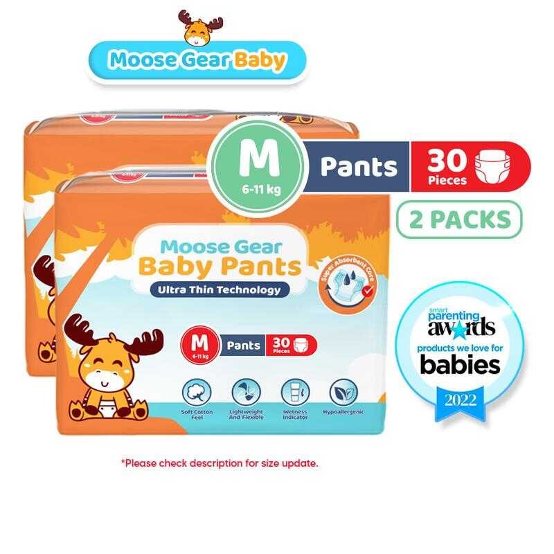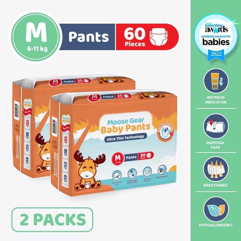 Moose Gear Baby Pants Diaper MEDIUM 60Pcs (Ks) Hypoallergenic Super Absorbent Double Leak Guard fgdf