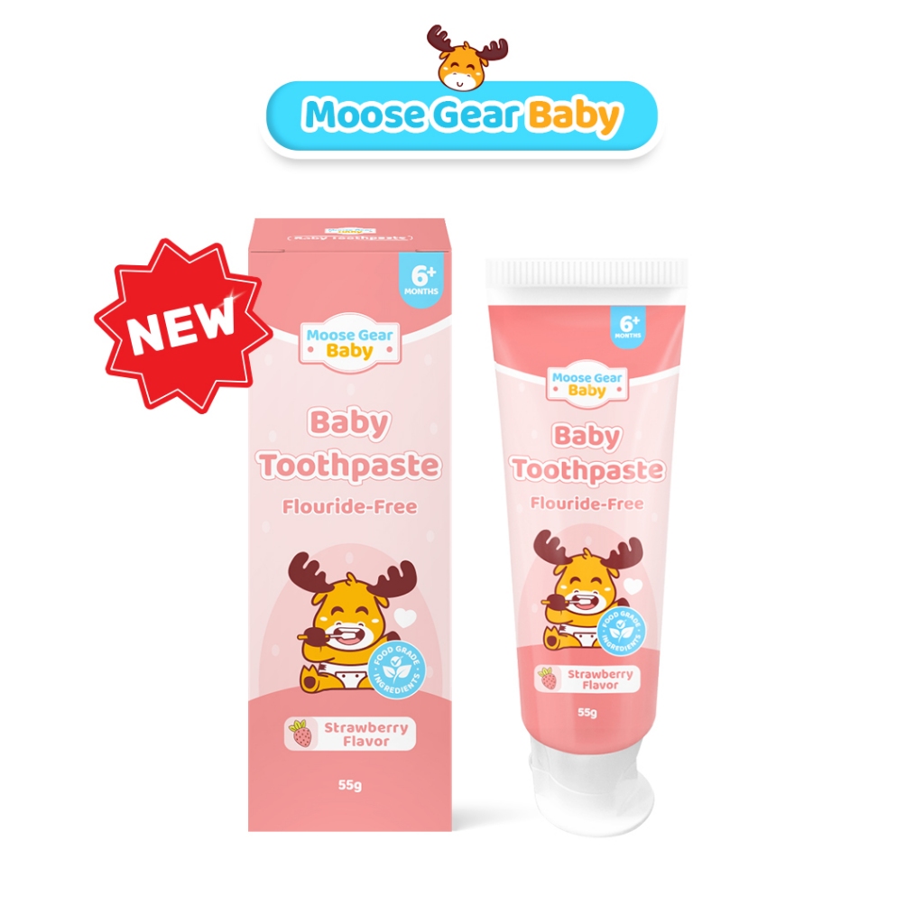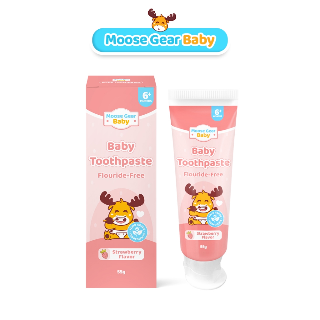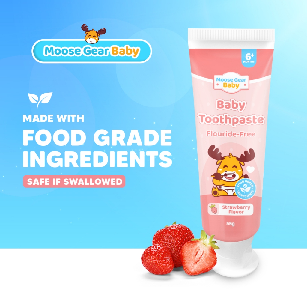 Moose Gear Baby Toothpaste 55g Strawberry Flavor Fluoride Free Safe if swallowed