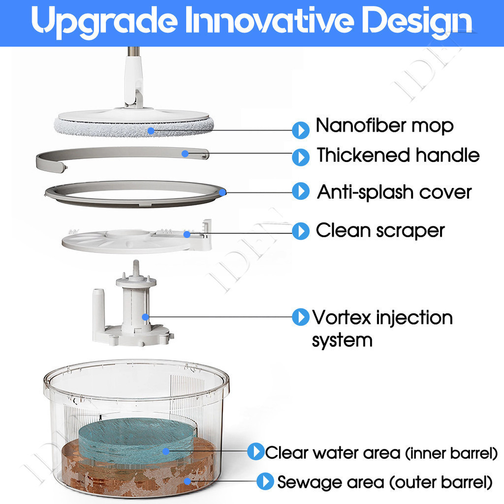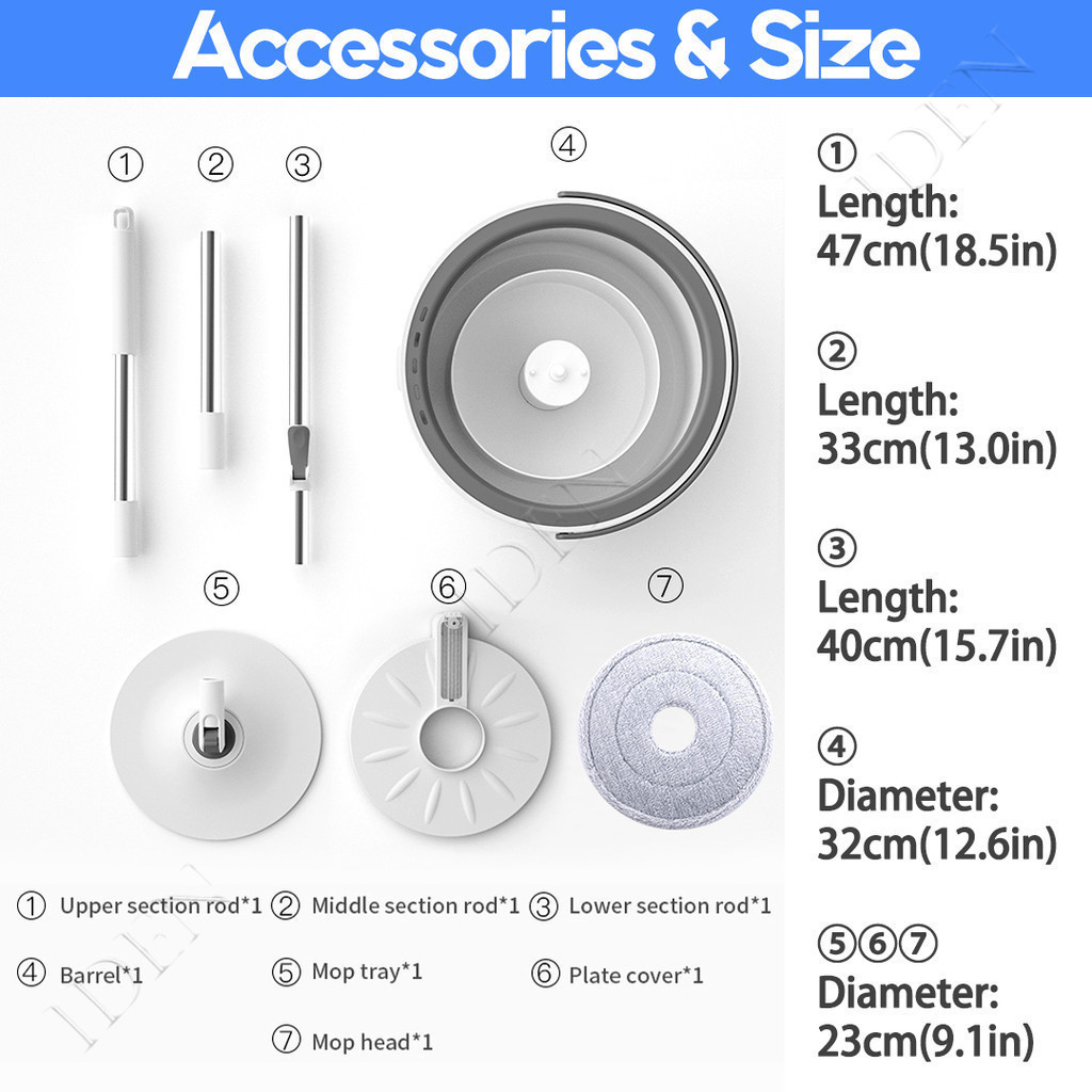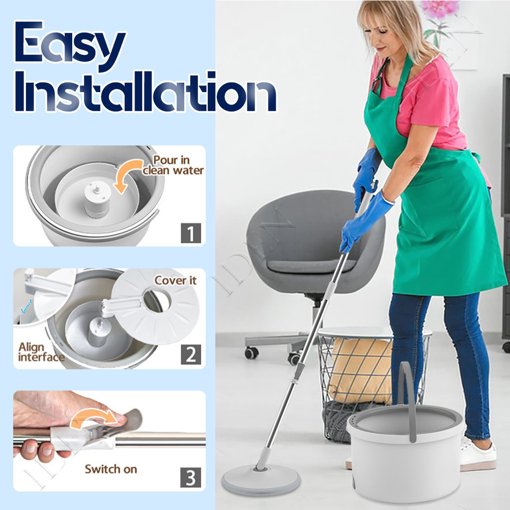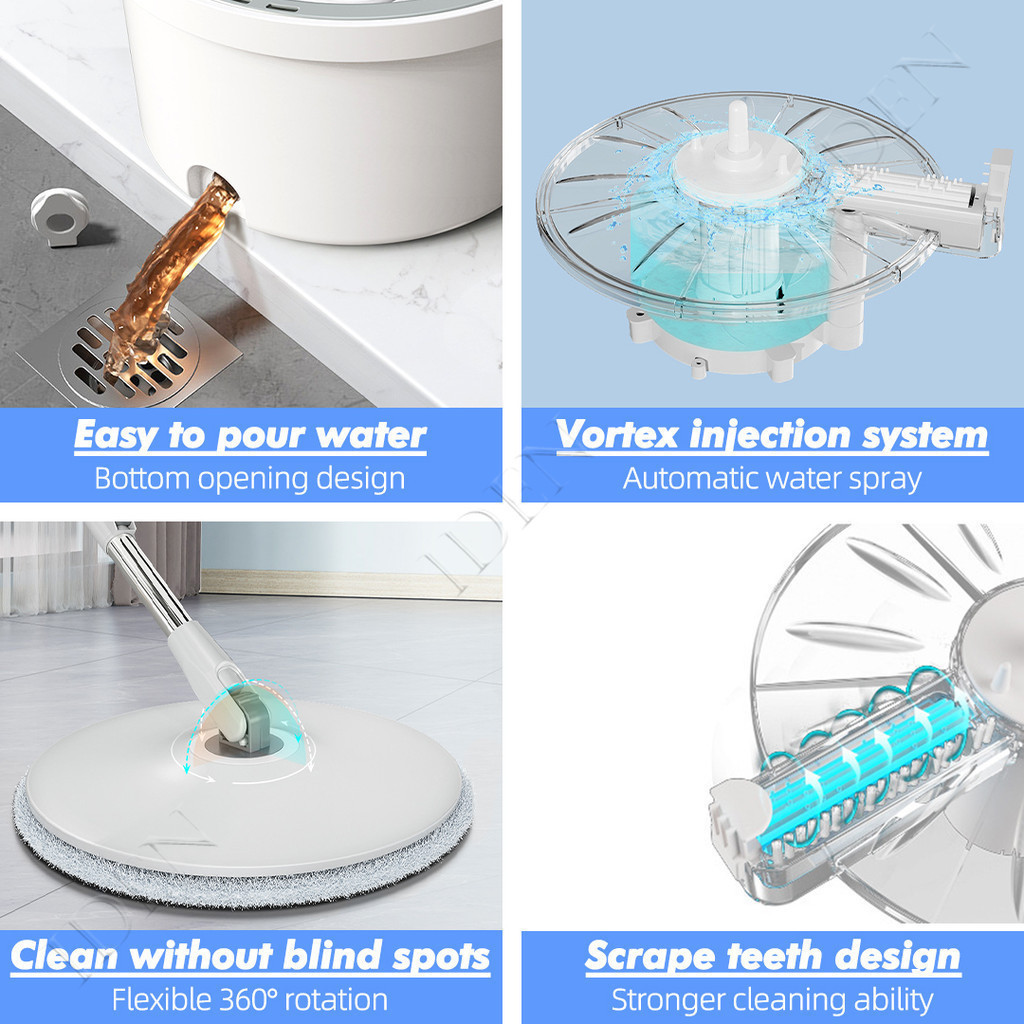 Mop with Spinner 360 Rotating Mops Floor Cleaning Flat Mop Magic Spinning Mop with Bucket