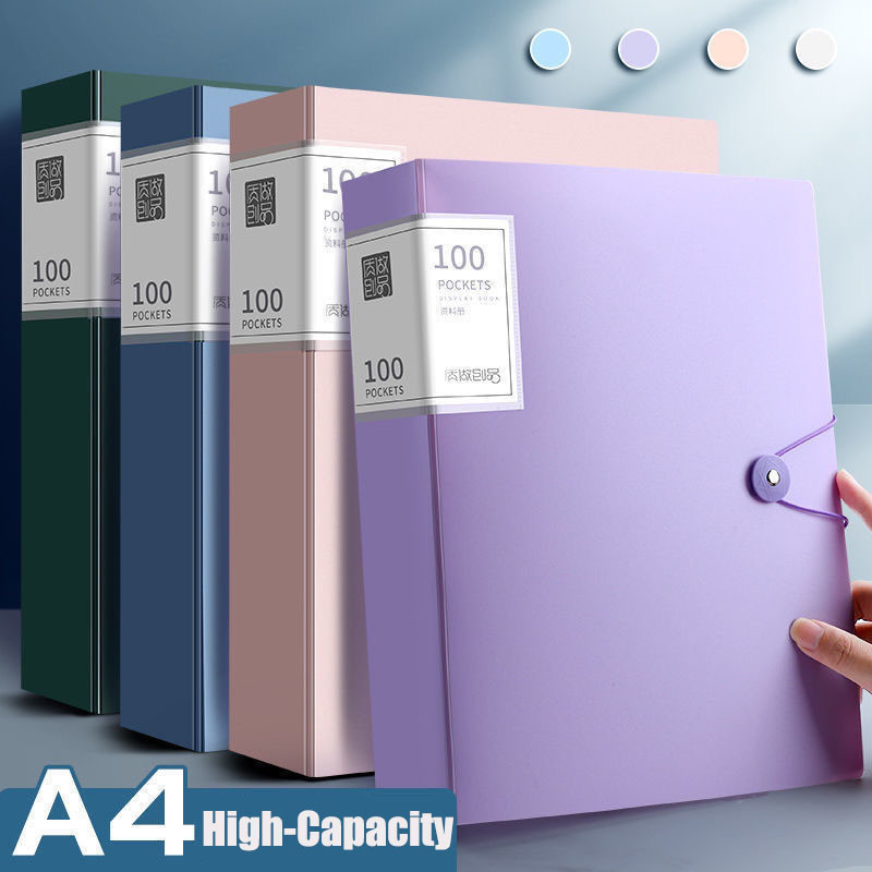 Morandi A4 Transparent Button Folder Paper Storage Multi-layer File Management Paper Classification