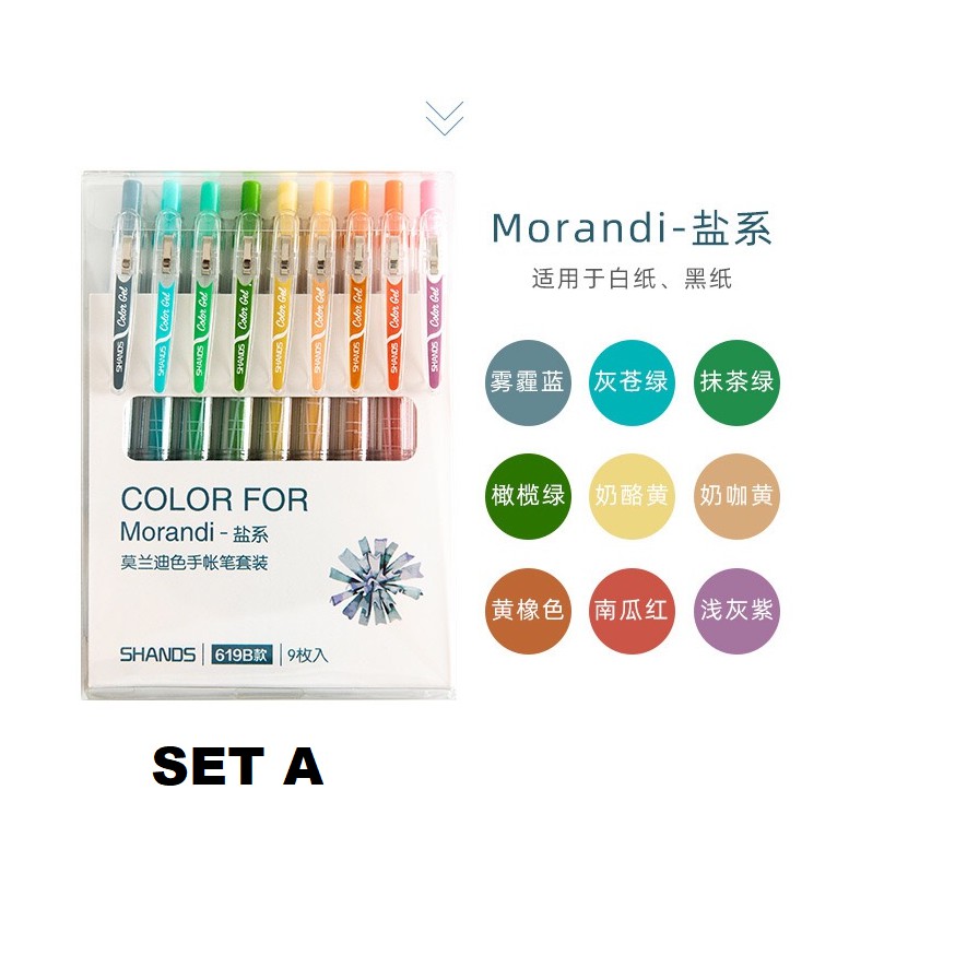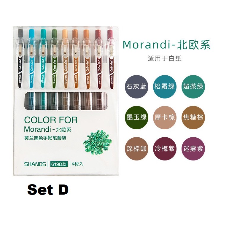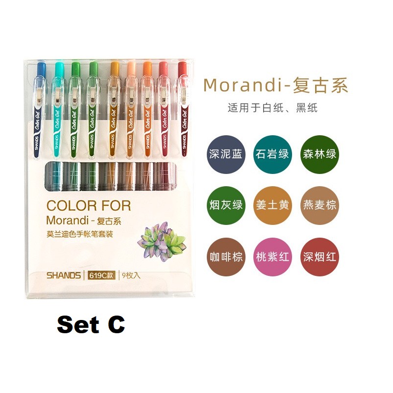 Morandi Series Retractable Color Palette Pen 9 Color Set