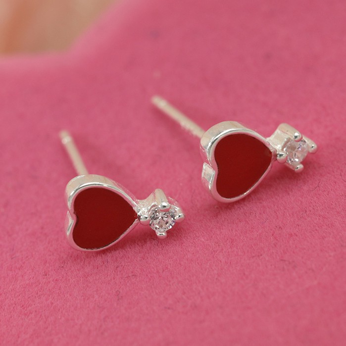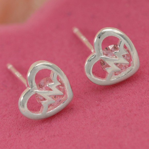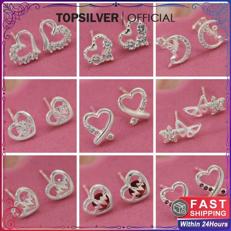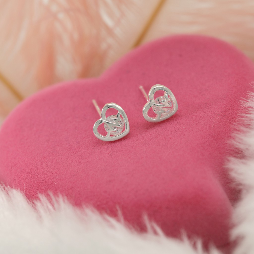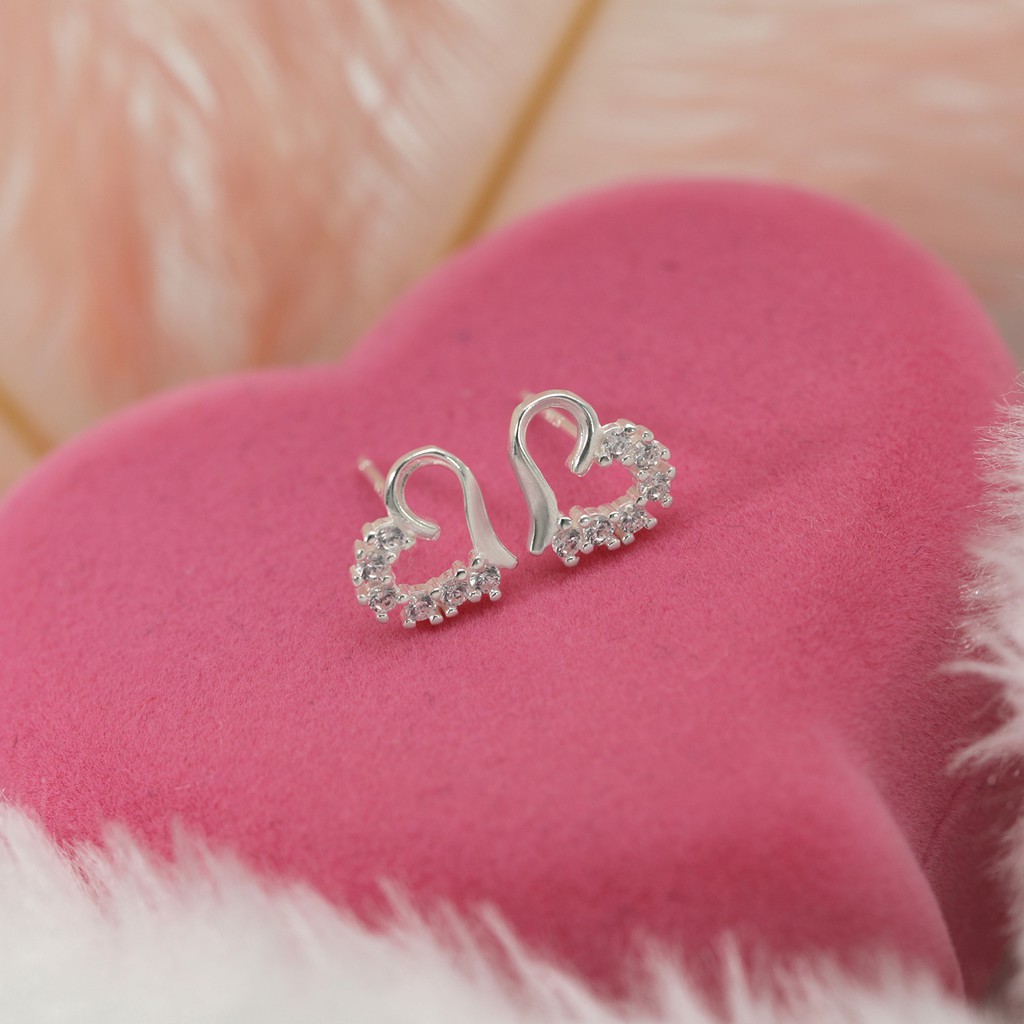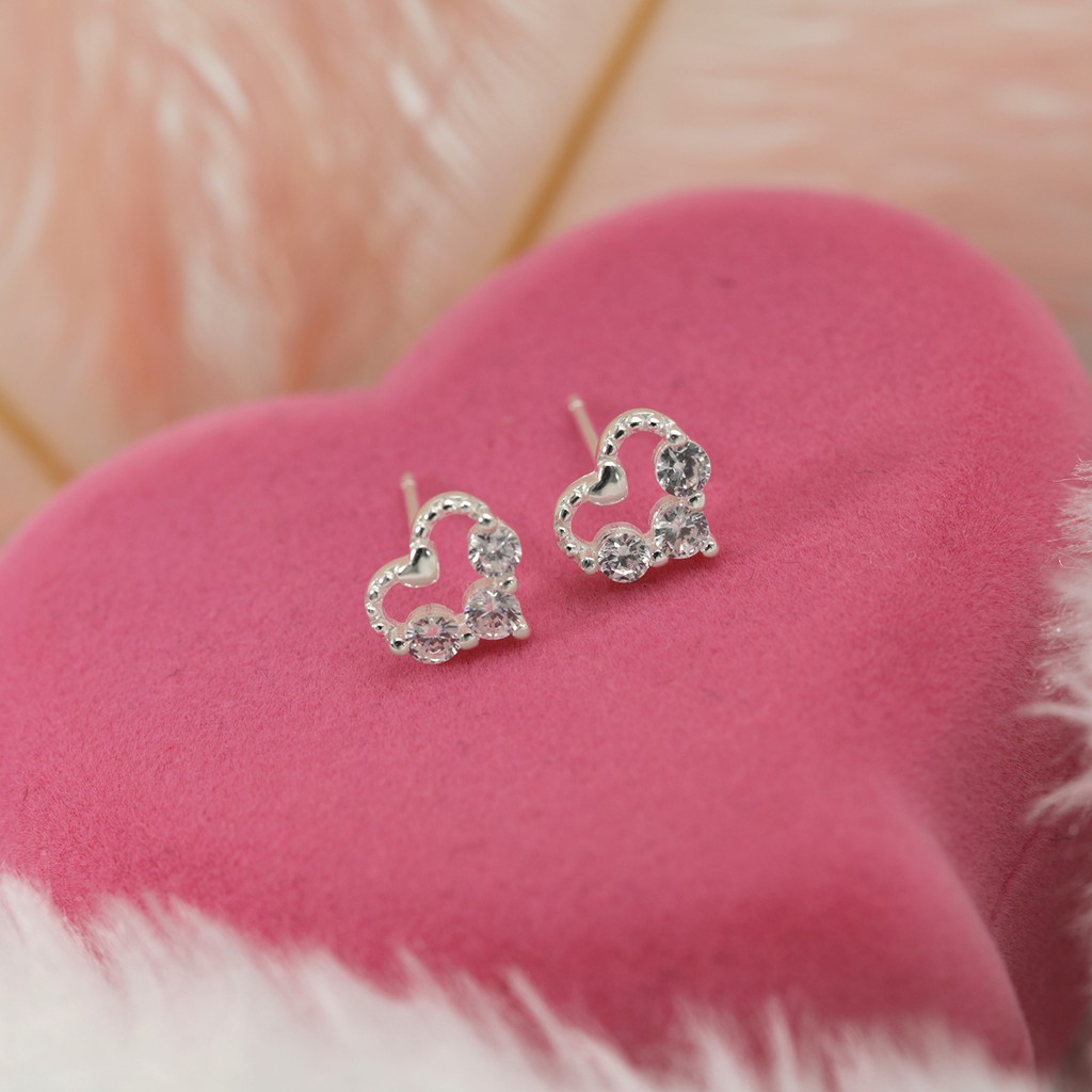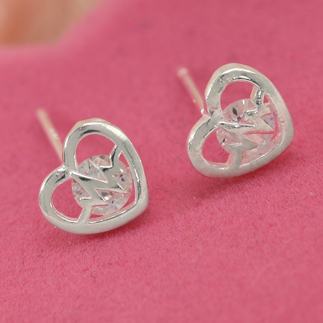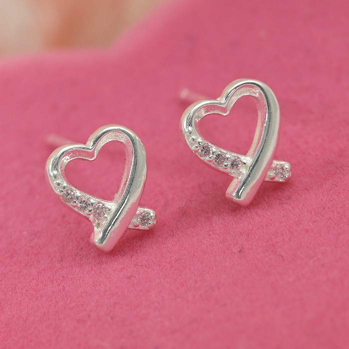 Morning Star Top Silver Jewelry Sh Italy 925 Silver Heart Diamond Stud Earrings Collections Jewelry
