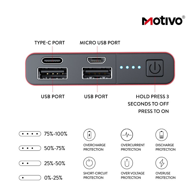 Motivo H100 10000 mAh Powerbank Original Compact Fast Charge With LED Light Display