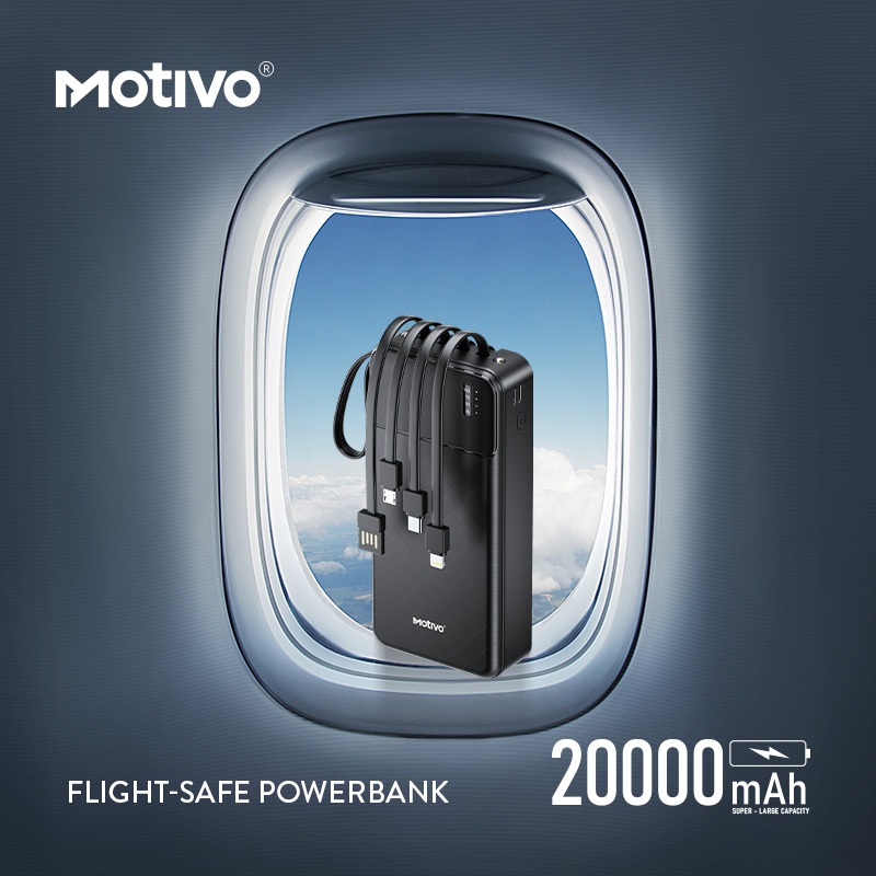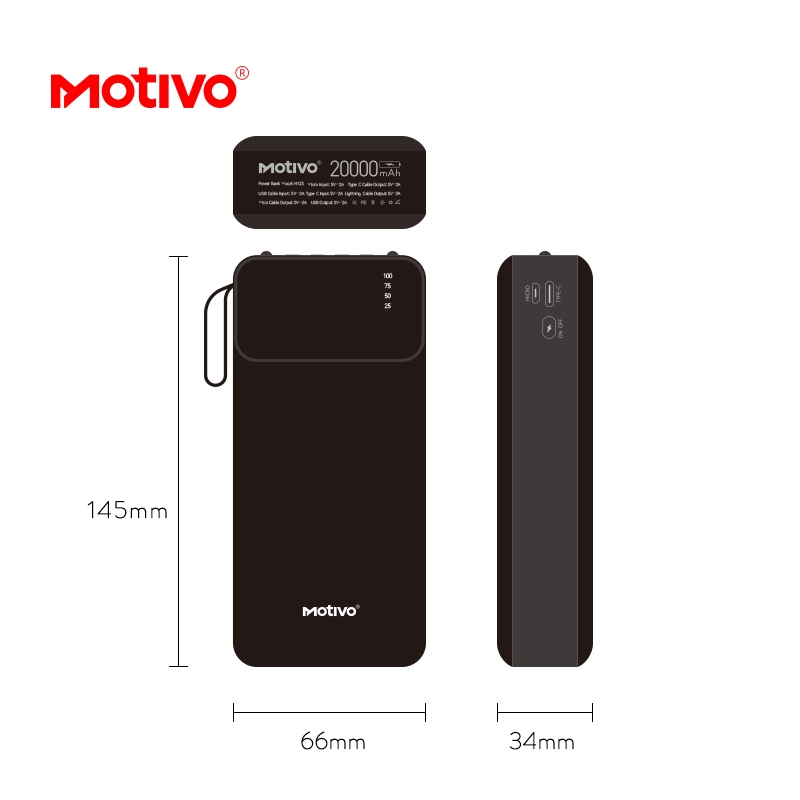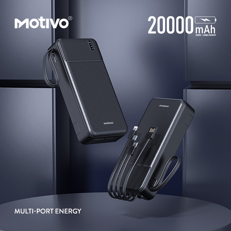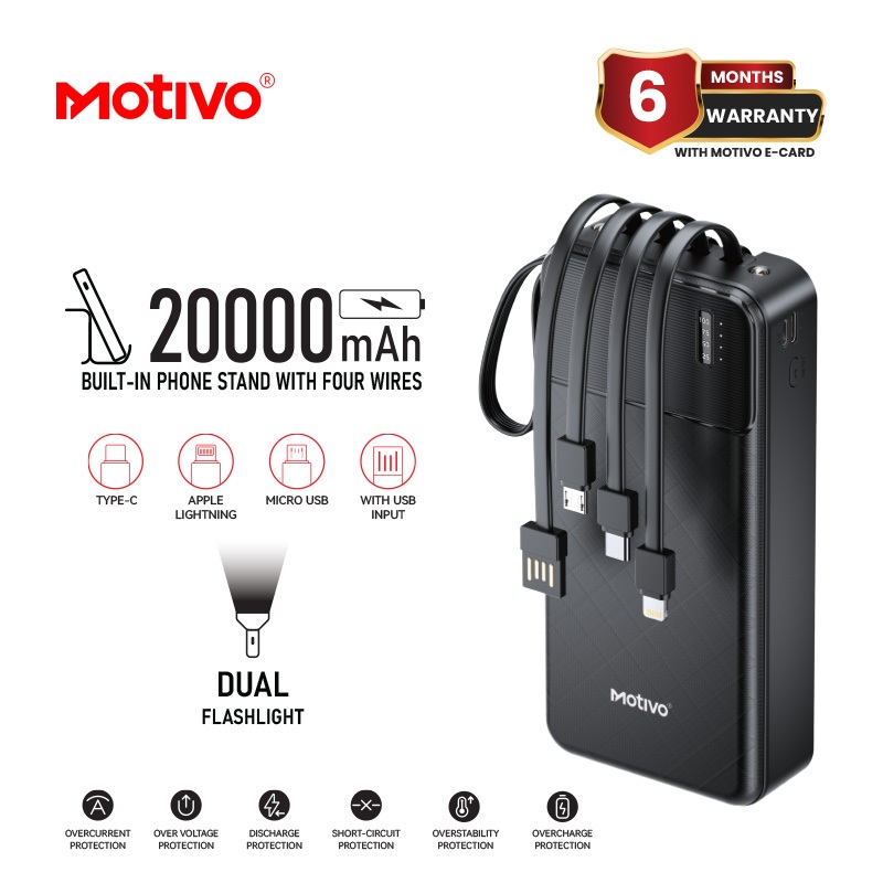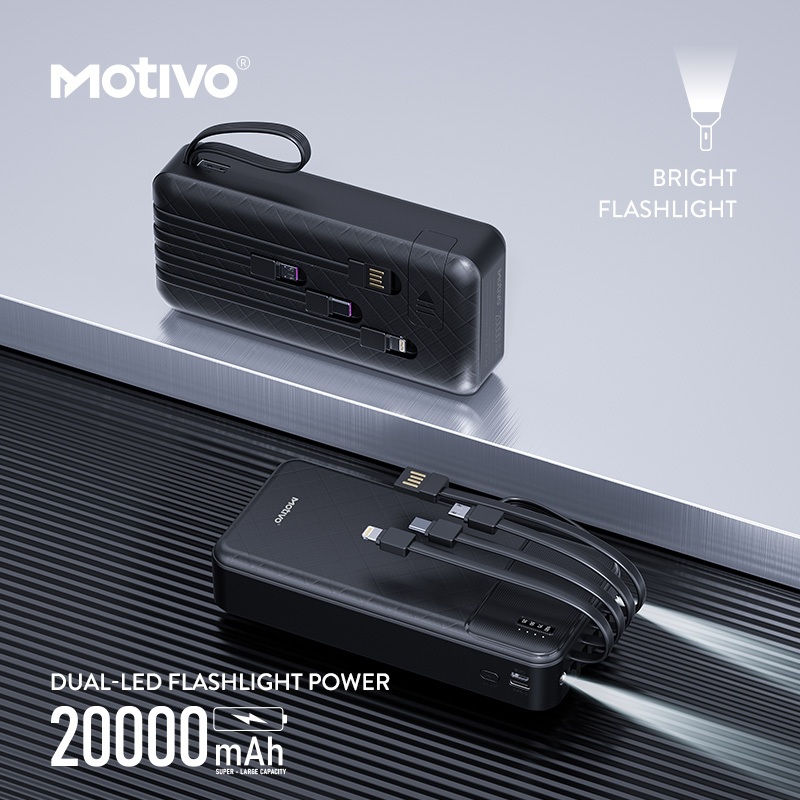 Motivo H125 20000mAh Large Capacity Power bank with built-in Cablewire, Phone Stand and Flashlight