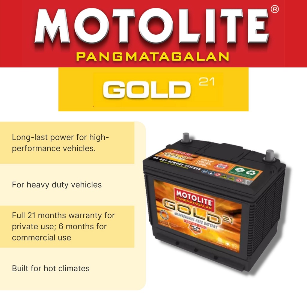 Motolite Gold Maintenance Free Car Battery NS40/ B20 (21 Months Warranty)