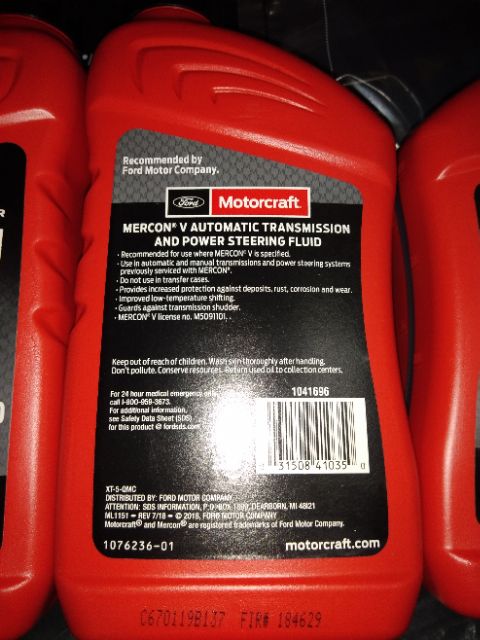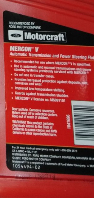 Motorcraft Mercon V ATF and Power steering fluid 1qt