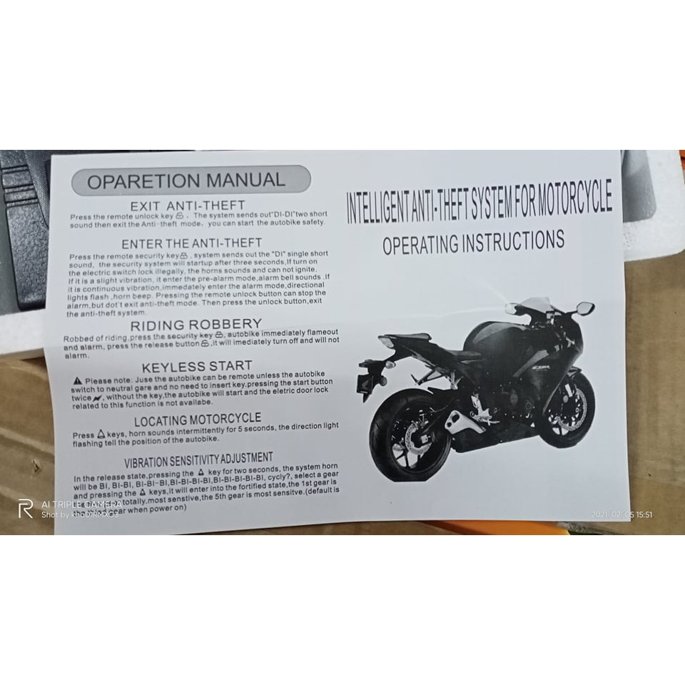 Motorcycle Anti-Theft Alarm System with Battery