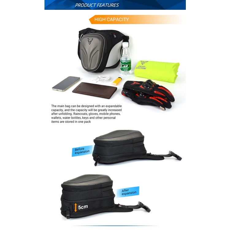 Motorcycle Drop Leg Side Bag Black Motorcycle Bag Hard Shell Outdoor Casual Waist Bag Motorbike Hip Bum Pack Bags MC-0119