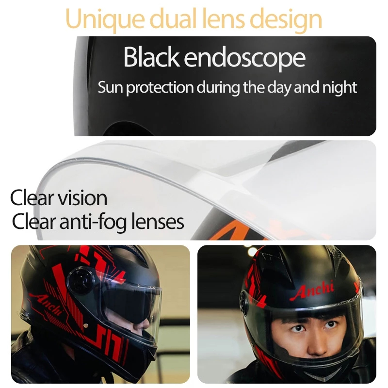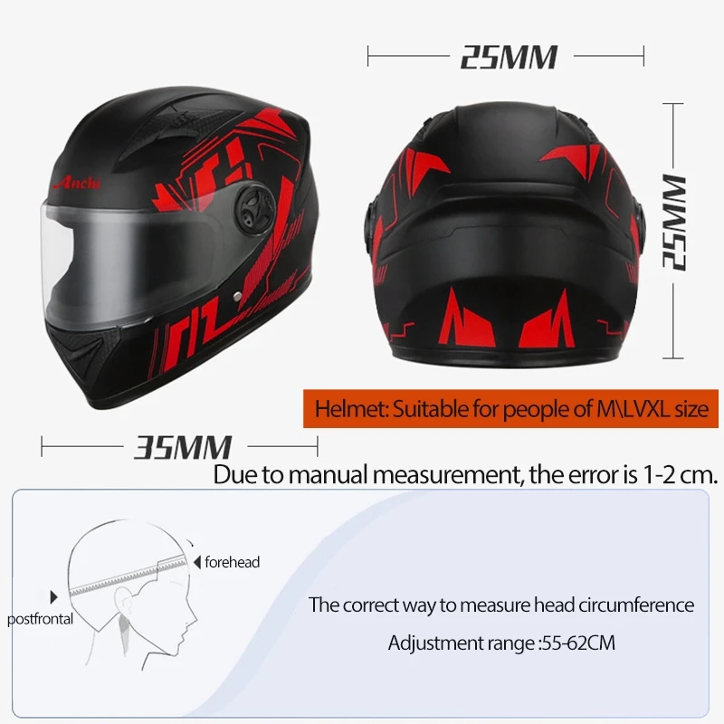 Motorcycle Helmet Full Face 5X HD Dual Visor For 58cm-62cm Head Circumference Ultraviolet-Proof