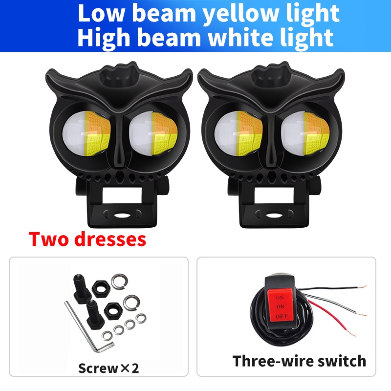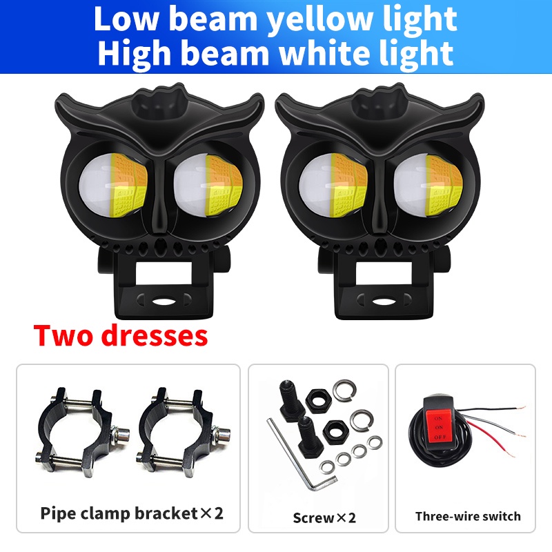 Motorcycle LED Light Mini Driving Light Motorcycle Spotlight Spot Light White Yellow High and low light Fog Lamp Owl Fish Eye Spotlight