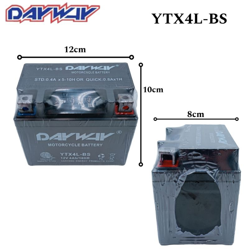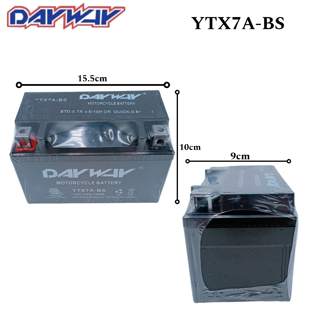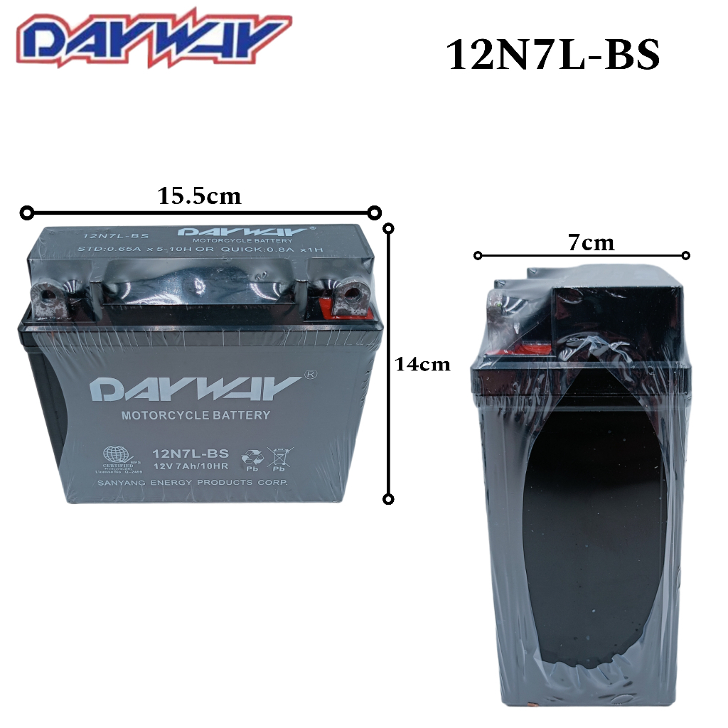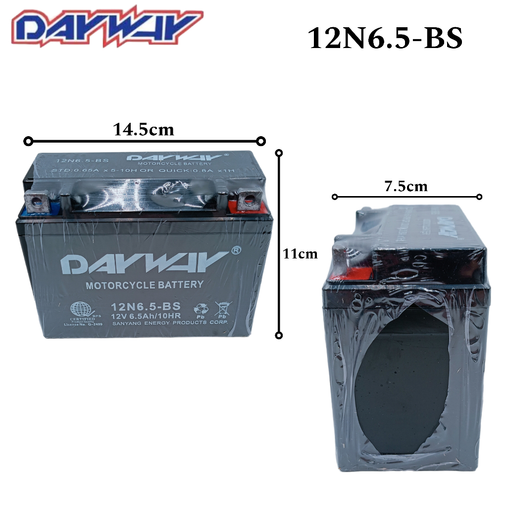 Motorcycle Motor DayWay Battery ALL SIZE 2.5L/ 3L/ 4L/ 5L/ 6.5L/ 7L/ 7A WITH SMART CHARGER