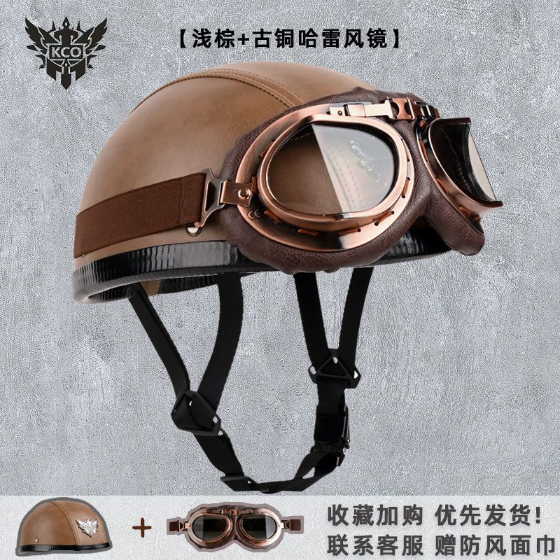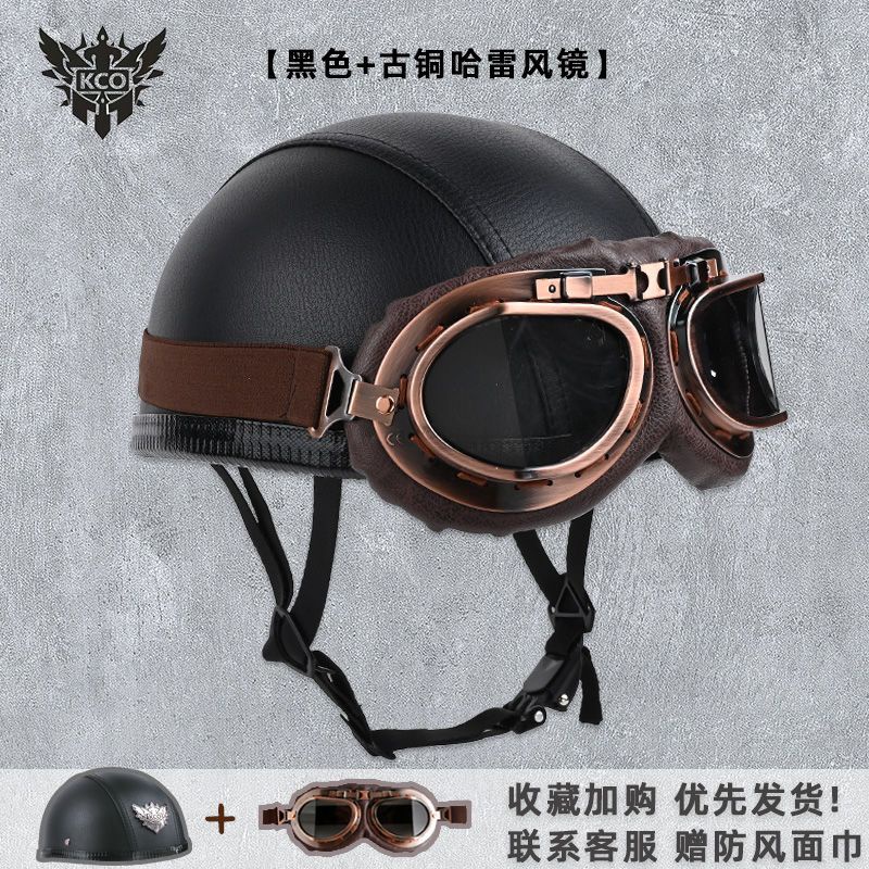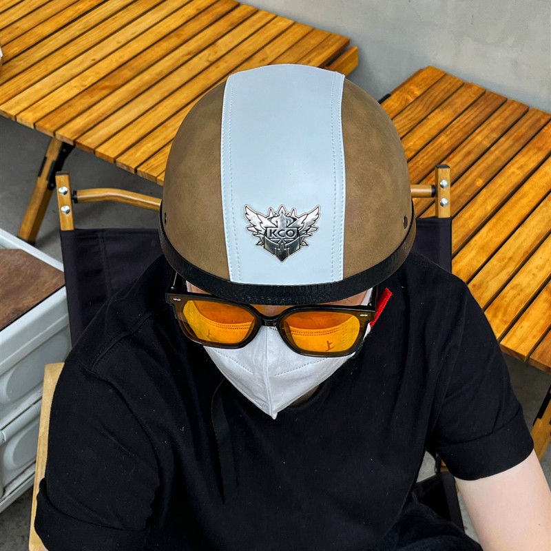 Motorcycle Motorbike Rider Half PU Leather Retro Helmet Visor With Collar Vespa Open Face Half Motor
