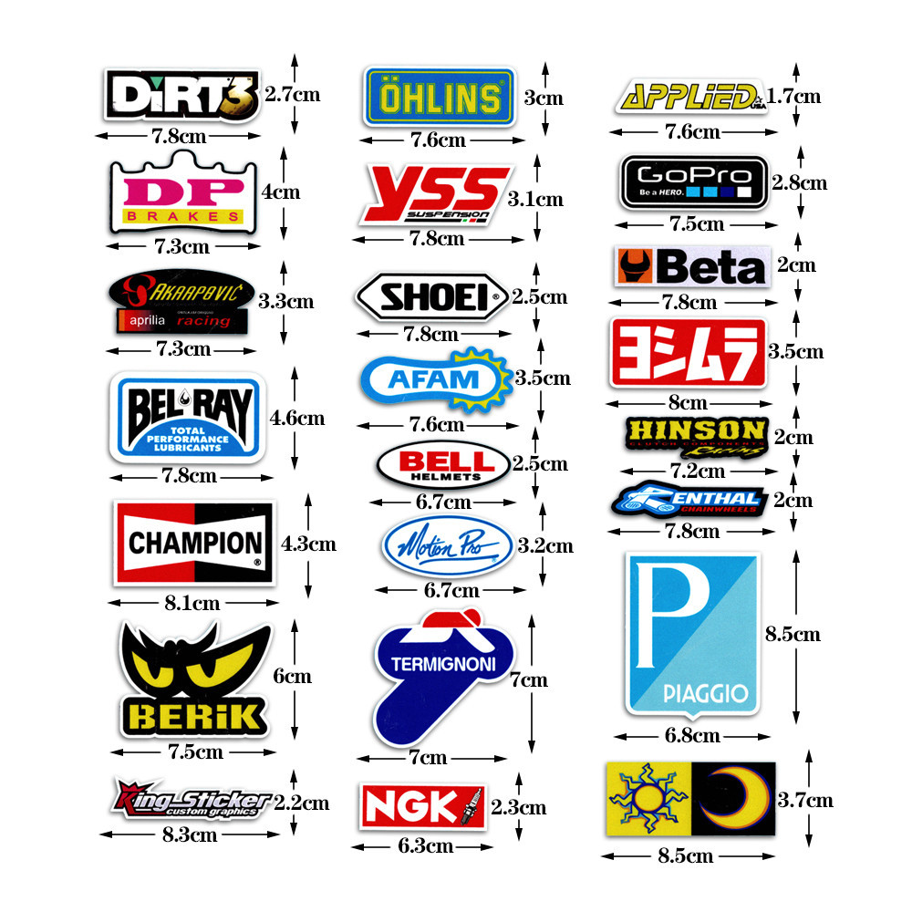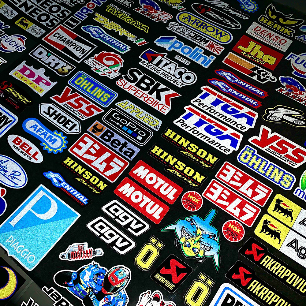 Motorcycle Reflectived Sticker Brand LOGO Racing Helmet Decal Vinyl Graphic Decoration MOTUL AGV GOPRO MONSTAR GS 74 SBK ENEOS for Honda Yamaha Motocross A4 Size Whole Set