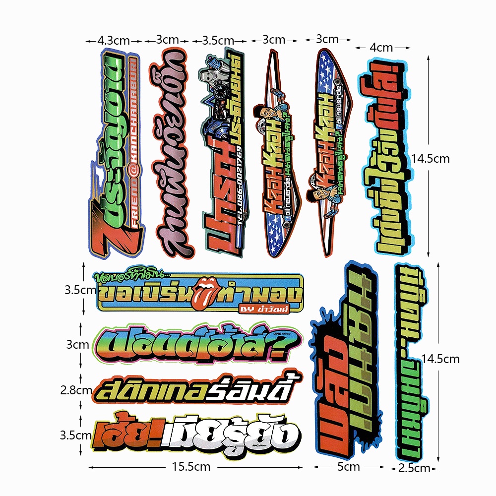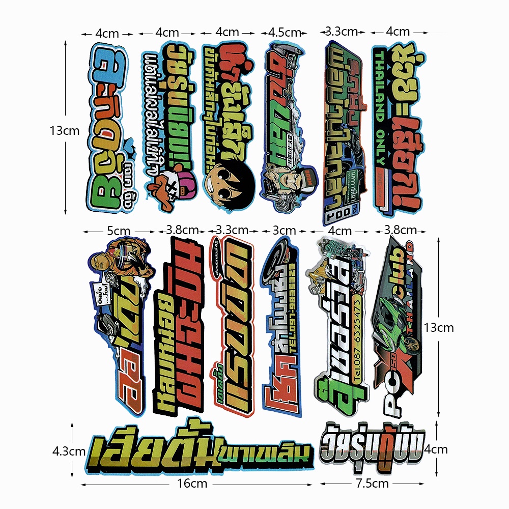 Motorcycle Thai Sticker Thailook Helmet Decal - Thai Look Sidebar Pedal Decoration 12-14Pcs/Set