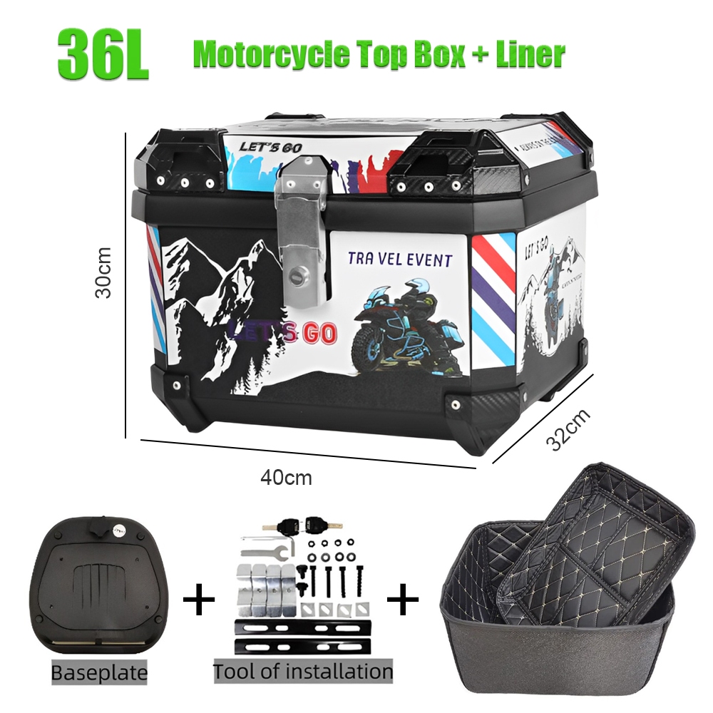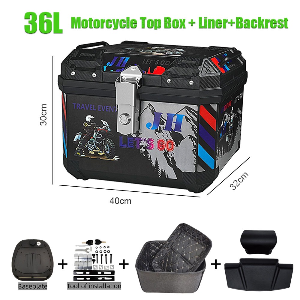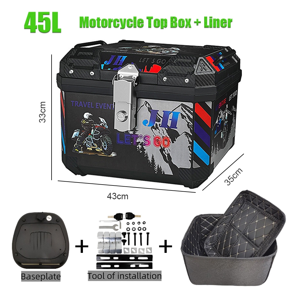 Motorcycle Top Box 36L/45L Large Capacity Universal Motorcycle Tail Box Waterproof Trunk Helmet Box