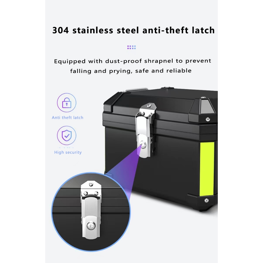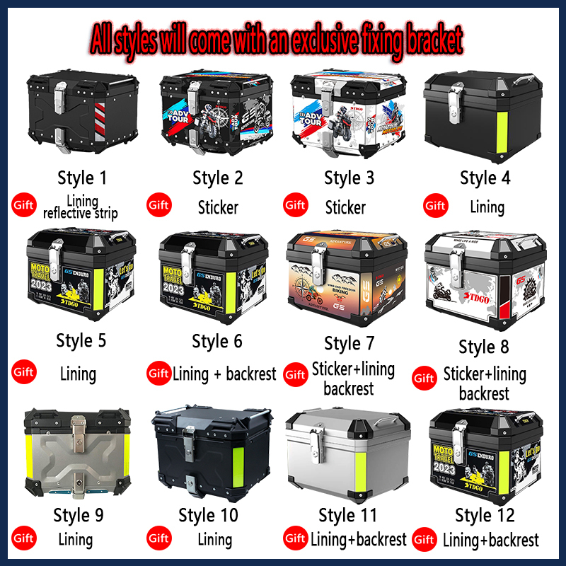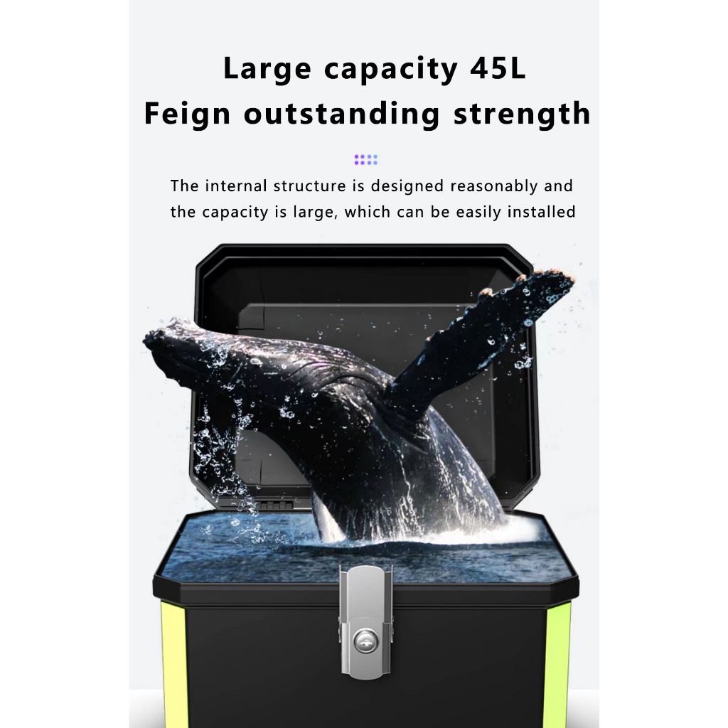 Motorcycle Top Box 45 Liter Large Capacity ABS Motorcycle Storage Box with Base Plate Backrest