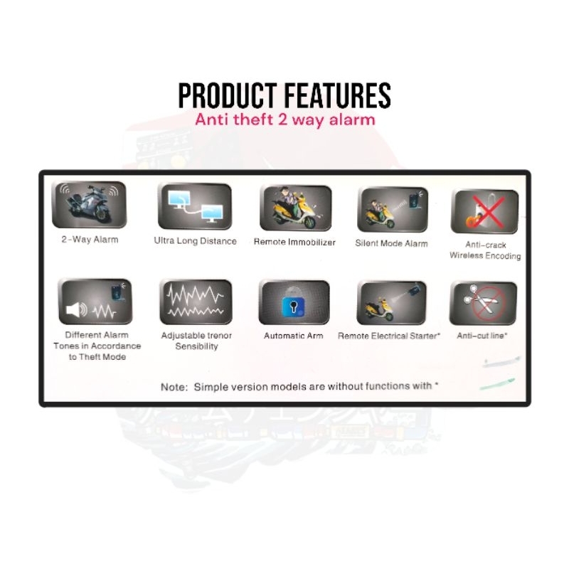 Motorcycle anti theft switch 2 way alarm with kill switch and starter.