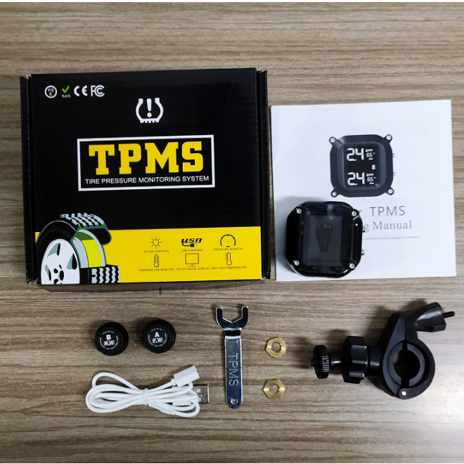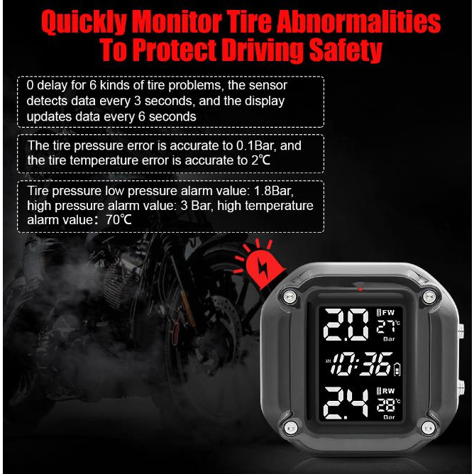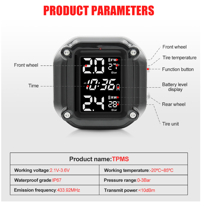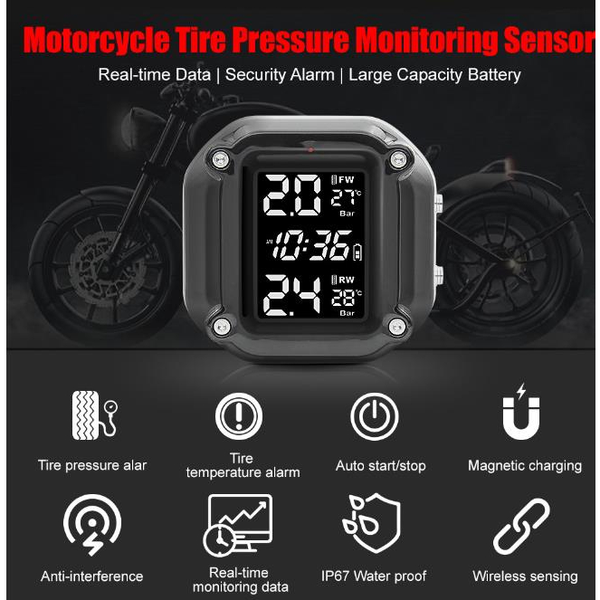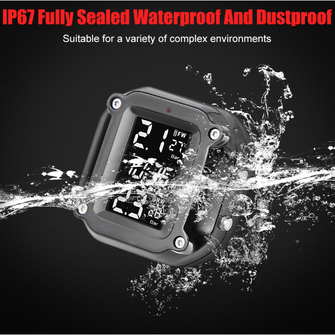 Motorcycle tire pressure detection with display screen external tire pressure display sensor