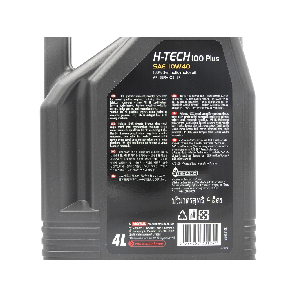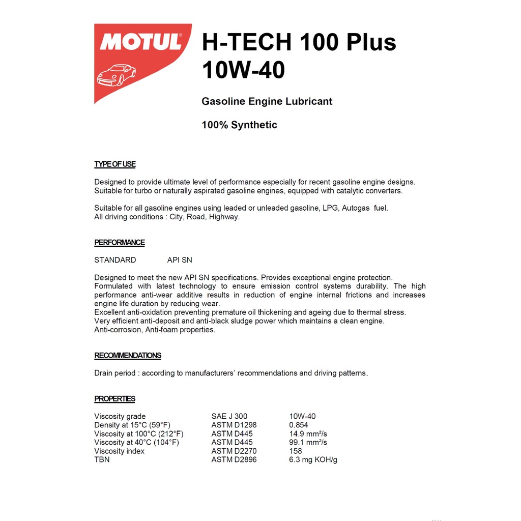 Motul H-Tech 100 Plus API SP 10W40 100% Synthetic Engine Oil (4 Liters)